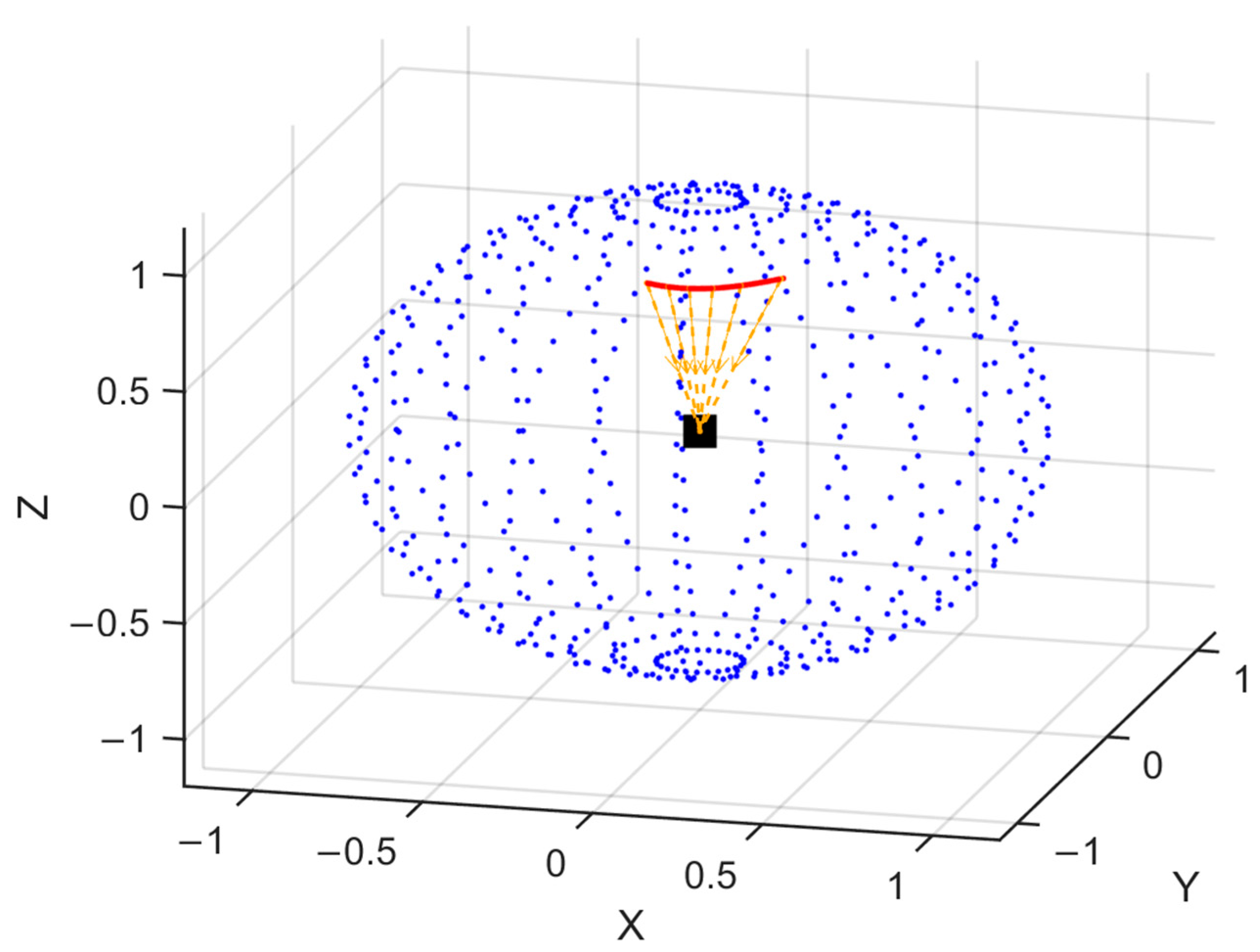 - Calculation of the cost function: In the l-th iteration, the candidate attitude parameter represented by the n-th particle is denoted as . Based on Equation (13), the cost function is evaluated for the candidate attitude parameters of each particle. For the n-th particle, the attitude parameter corresponding to its historical optimal cost is denoted as , while the attitude parameter corresponding to the global optimal cost across all particles is represented as .