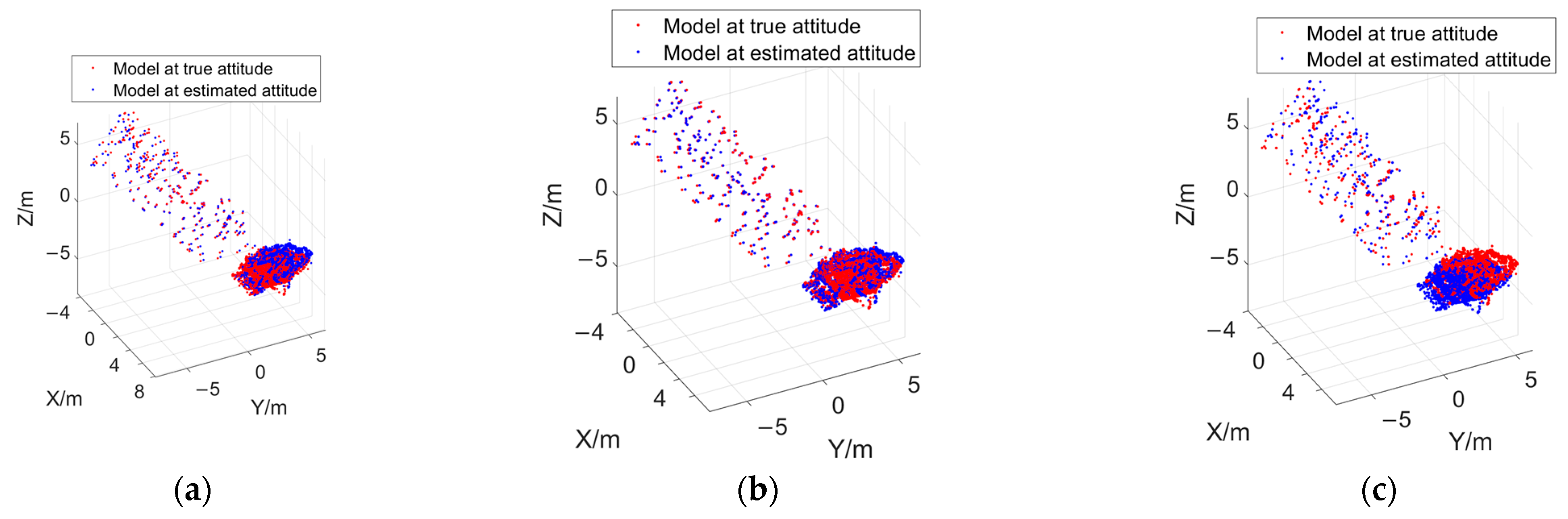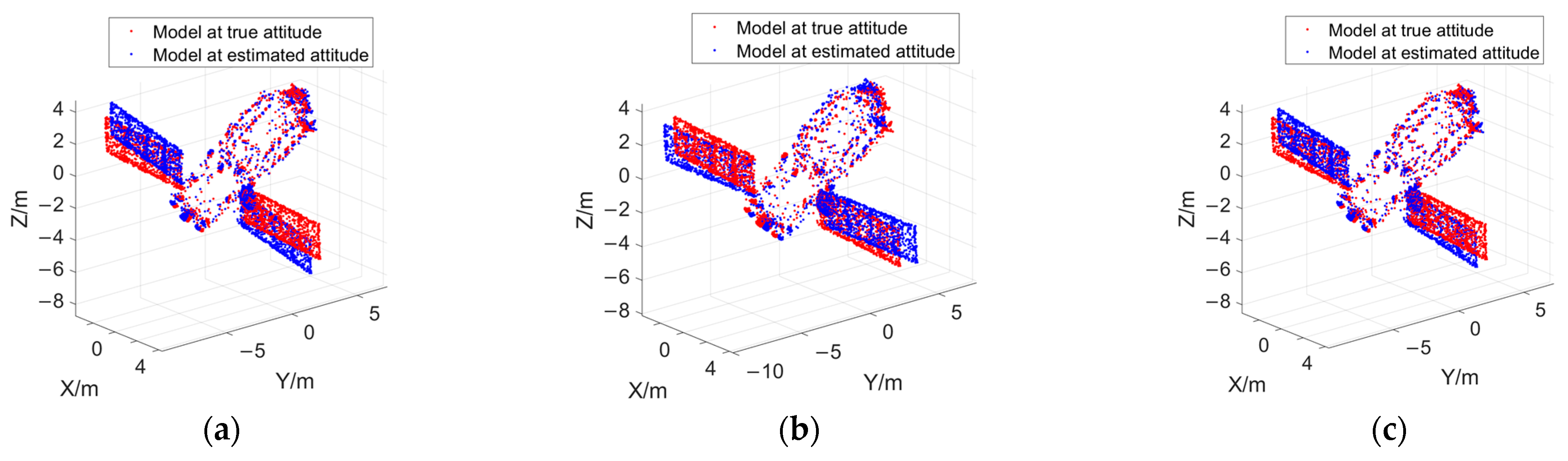 - Du, R.; Zhou, Z.; Liu, L.; Bai, X.; Zhou, F. A new attitude estimation method of space target utilizing ISAR image sequence under low SNR. In Proceedings of the 2021 CIE International Conference on Radar, Haikou, China, 15–19 December 2021. [Google Scholar]