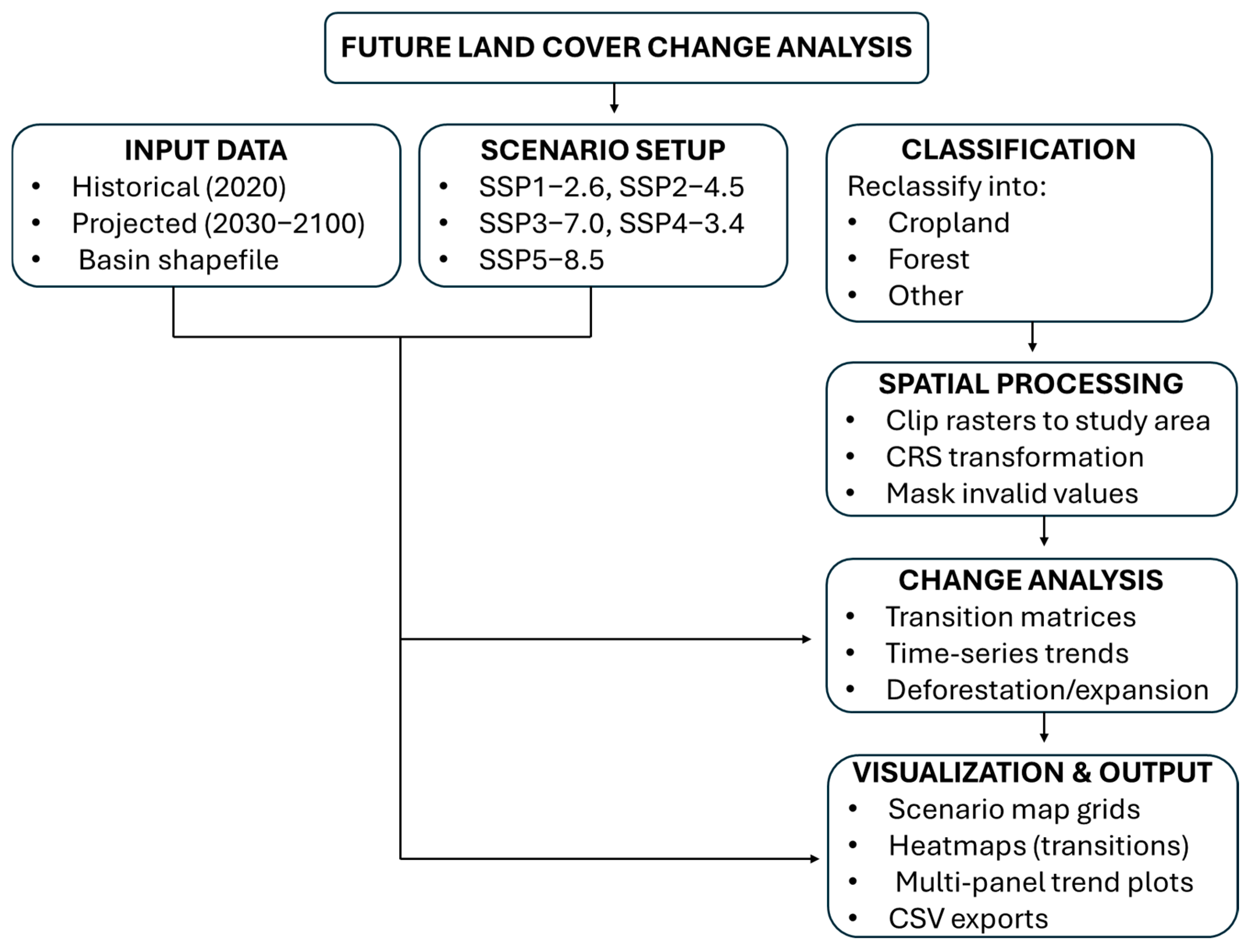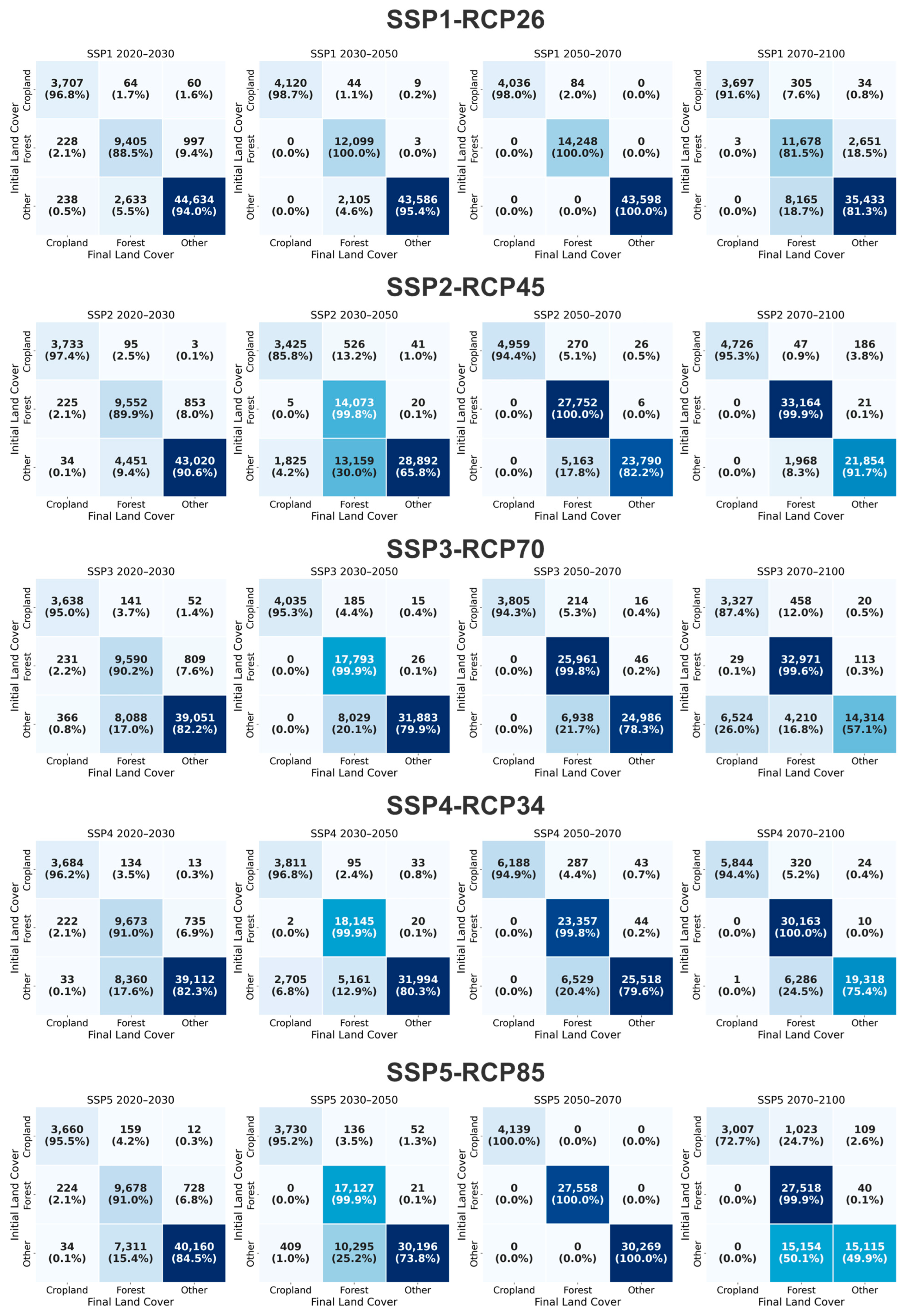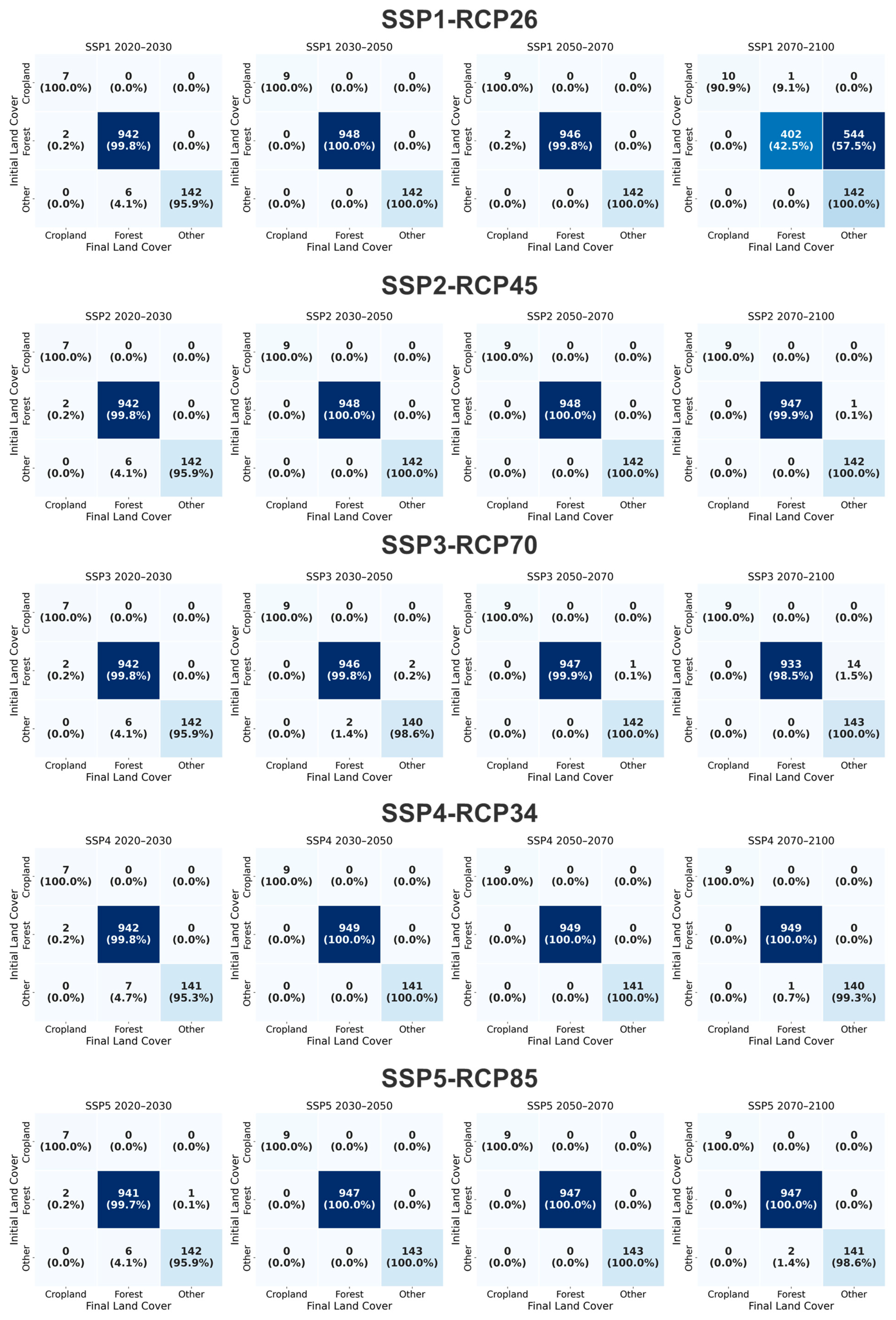 3.2.1. Systematic Comparison of Land Cover Change Across Climate Scenarios