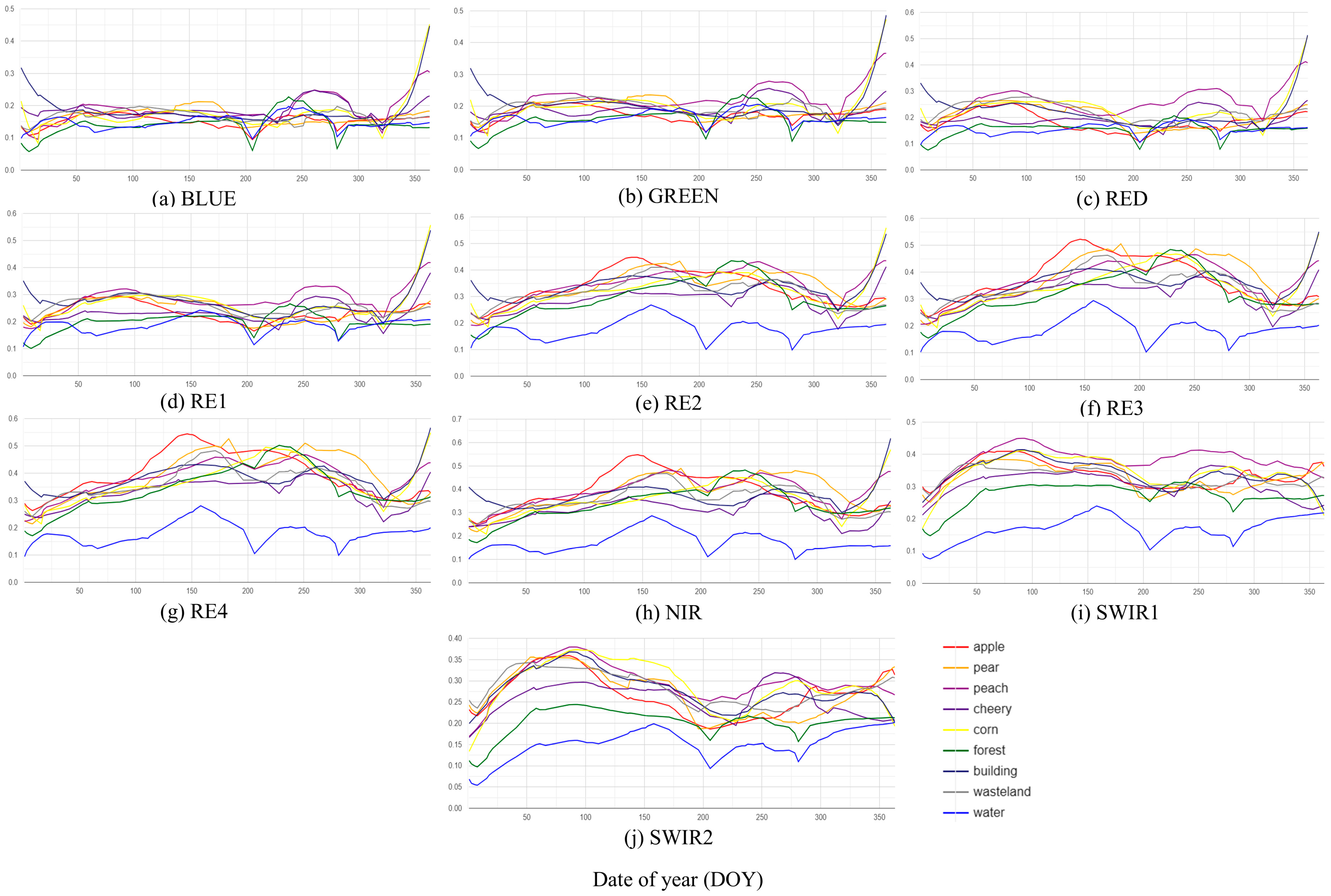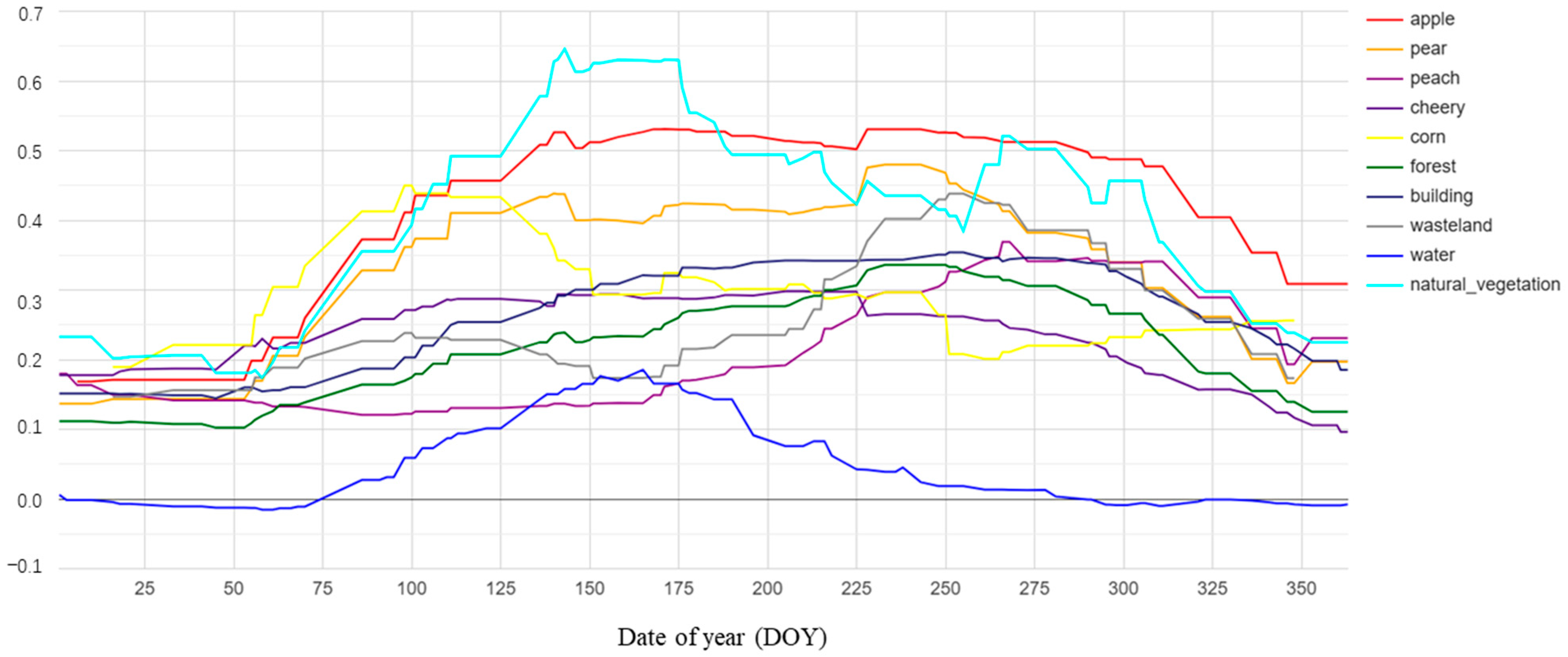 - Han, L.; Wang, X.; Li, D.; Yu, W.; Feng, Z.; Lu, X.; Wang, S.; Zhang, Z.; Gao, X.; Fan, J. A Novel Approach to Mapping the Spatial Distribution of Fruit Trees Using Phenological Characteristics. Agronomy 2024, 14, 150. [Google Scholar] [CrossRef]