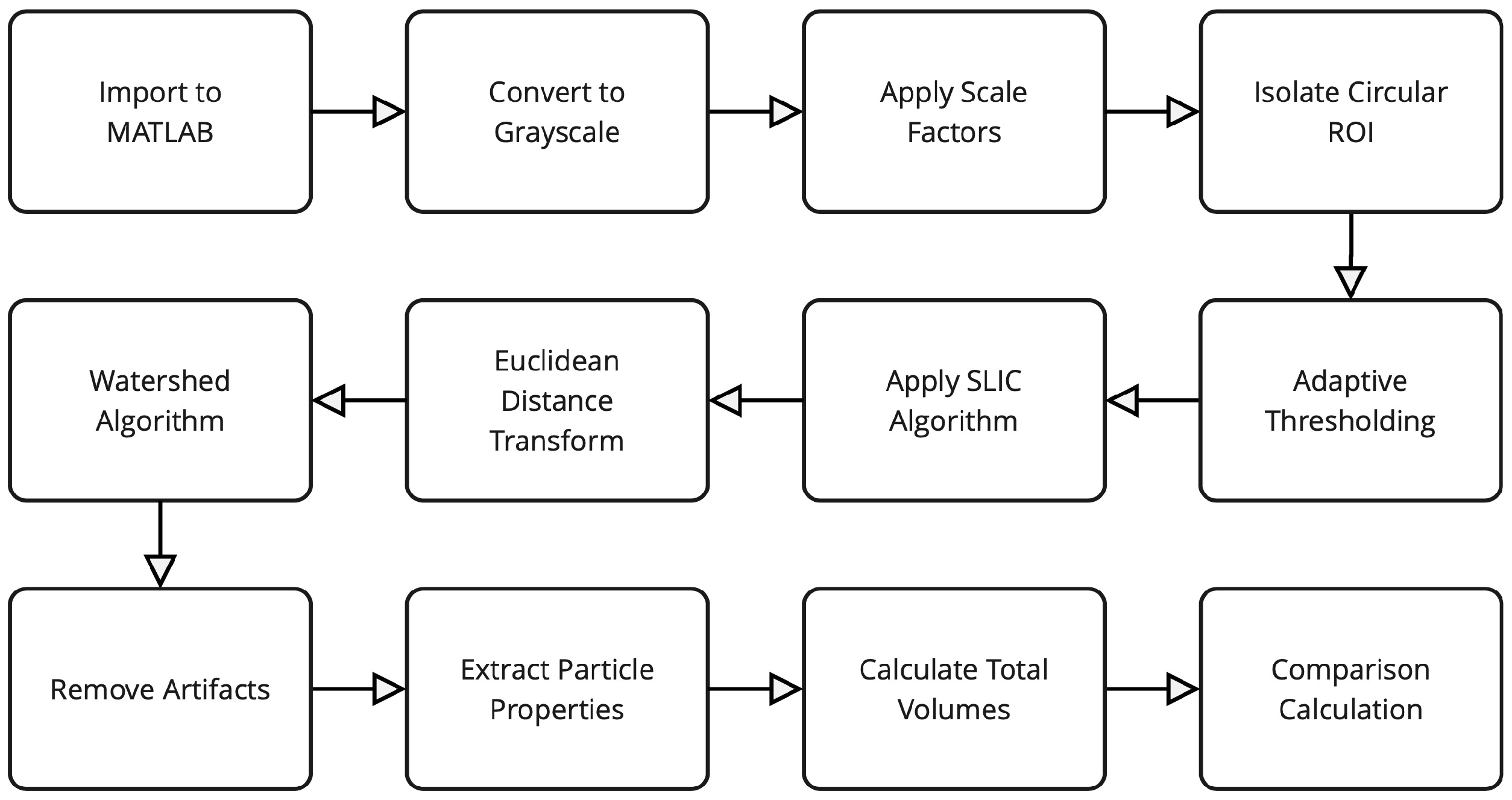 Image | Particles | Reference Volume | Sphere | Ellipsoid_AR1 | Feret Method | Cylinder | Voxel | Adaptive Ellipsoid |