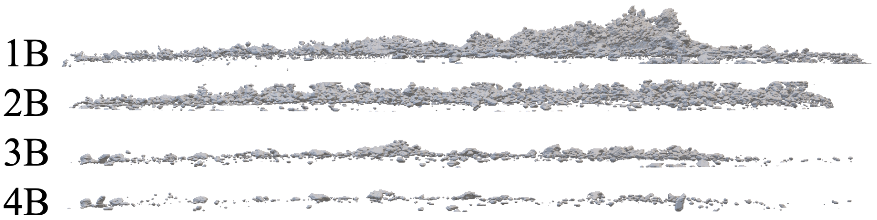 - Goguen, J.; Sharits, A.; Chiaramonti, A.; Lafarge, T.; Garboczi, E. Three-dimensional characterization of particle size, shape, and internal porosity for Apollo 11 and Apollo 14 lunar regolith and JSC-1A lunar regolith soil simulant. Icarus 2024, 420, 116166. [Google Scholar] [CrossRef]