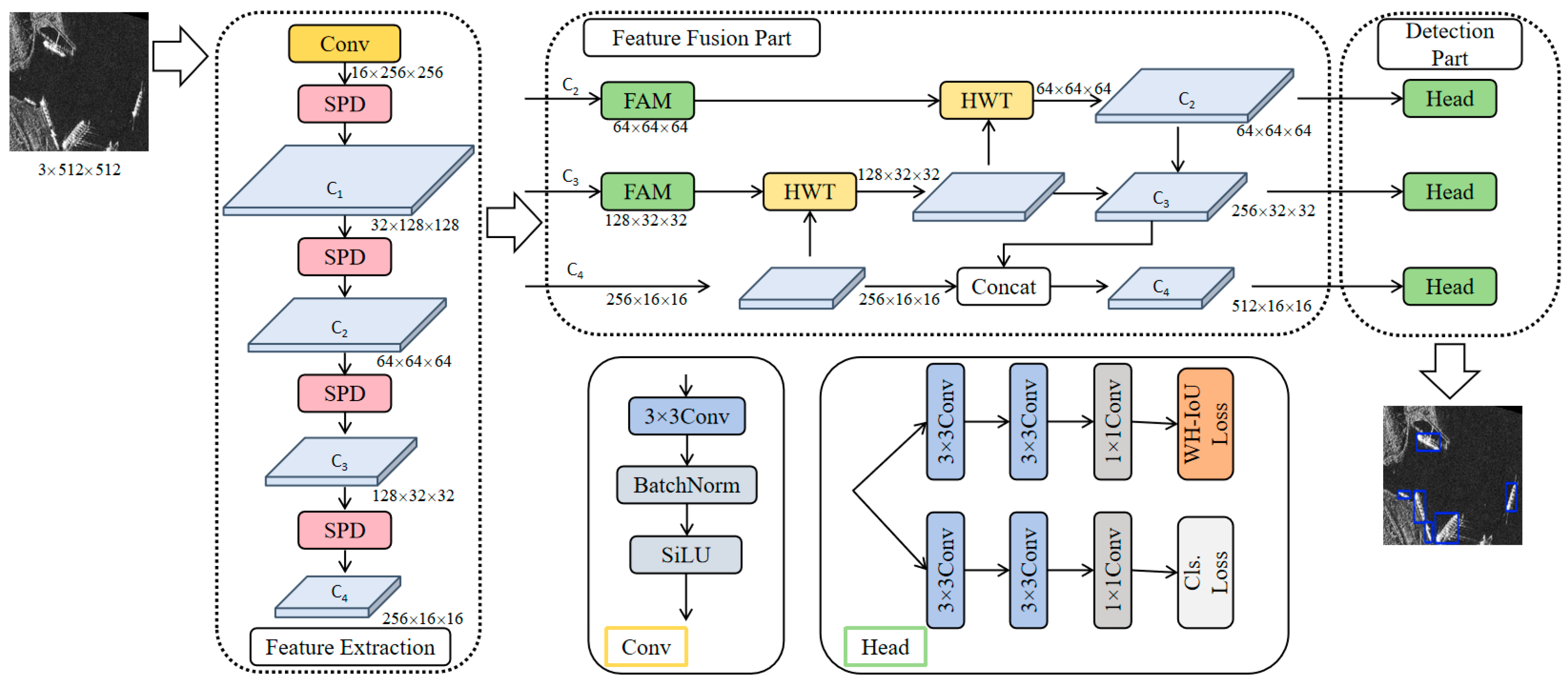 - The WH-IoU loss that can take into account the height-to-width ratio of ships is effectively integrated, which further enables the detection box to conform to the target.