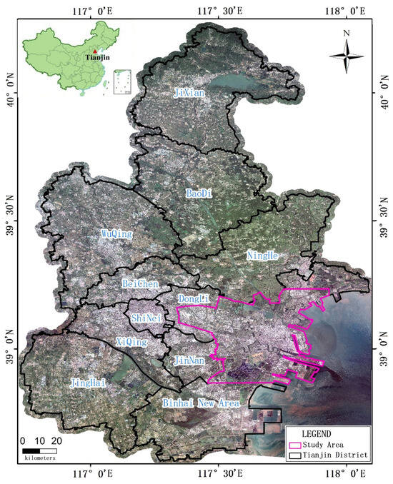 The map of the study area, Binhai New Area, China.