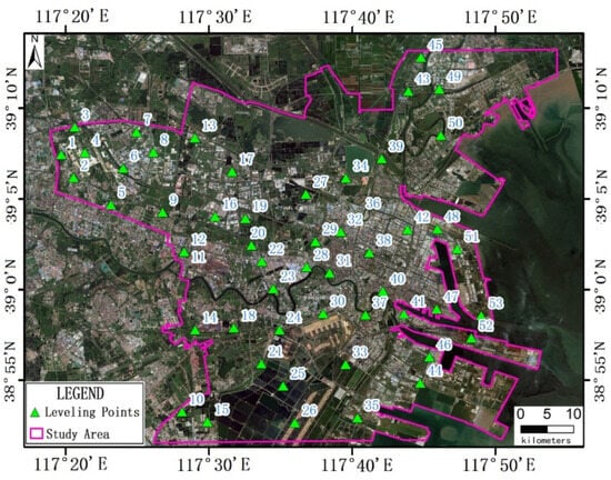 Spatial distribution of leveling points within the study area.