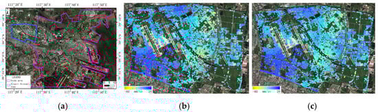 As shown in the second column, the average redundancy component in urban areas was 0.56, which was 2.15 times higher than that observed in suburban areas. This significant difference can be primarily attributed to the higher density of PS in urban environments, which enhances the likelihood of identifying many homonymous PS sets. In contrast, suburban areas were characterized by lower coherence and sparser ground targets, thereby limiting the opportunities for homonymous PS sets. Consequently, both internal and external reliability indicators exhibit better performance in urban areas when compared to their suburban counterparts.