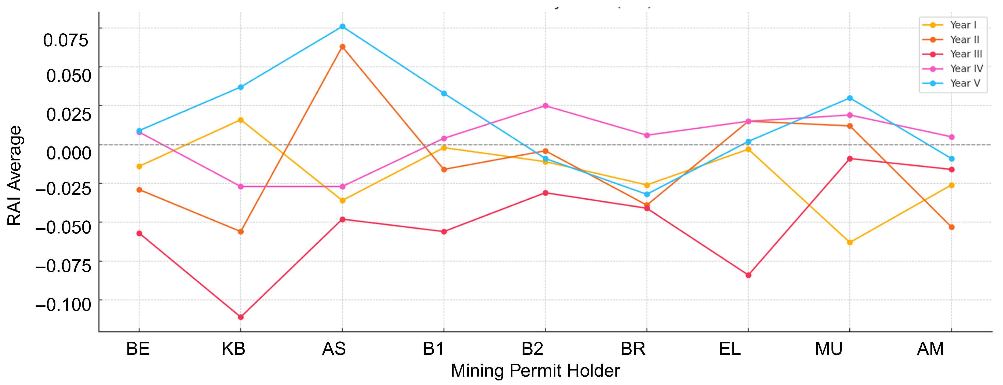 Average multitemporal RAI, Year I (2016–2017), Year II (2017–2018), Year III (2018–2019), Year IV (2019–2020), Year V (2020–2021).