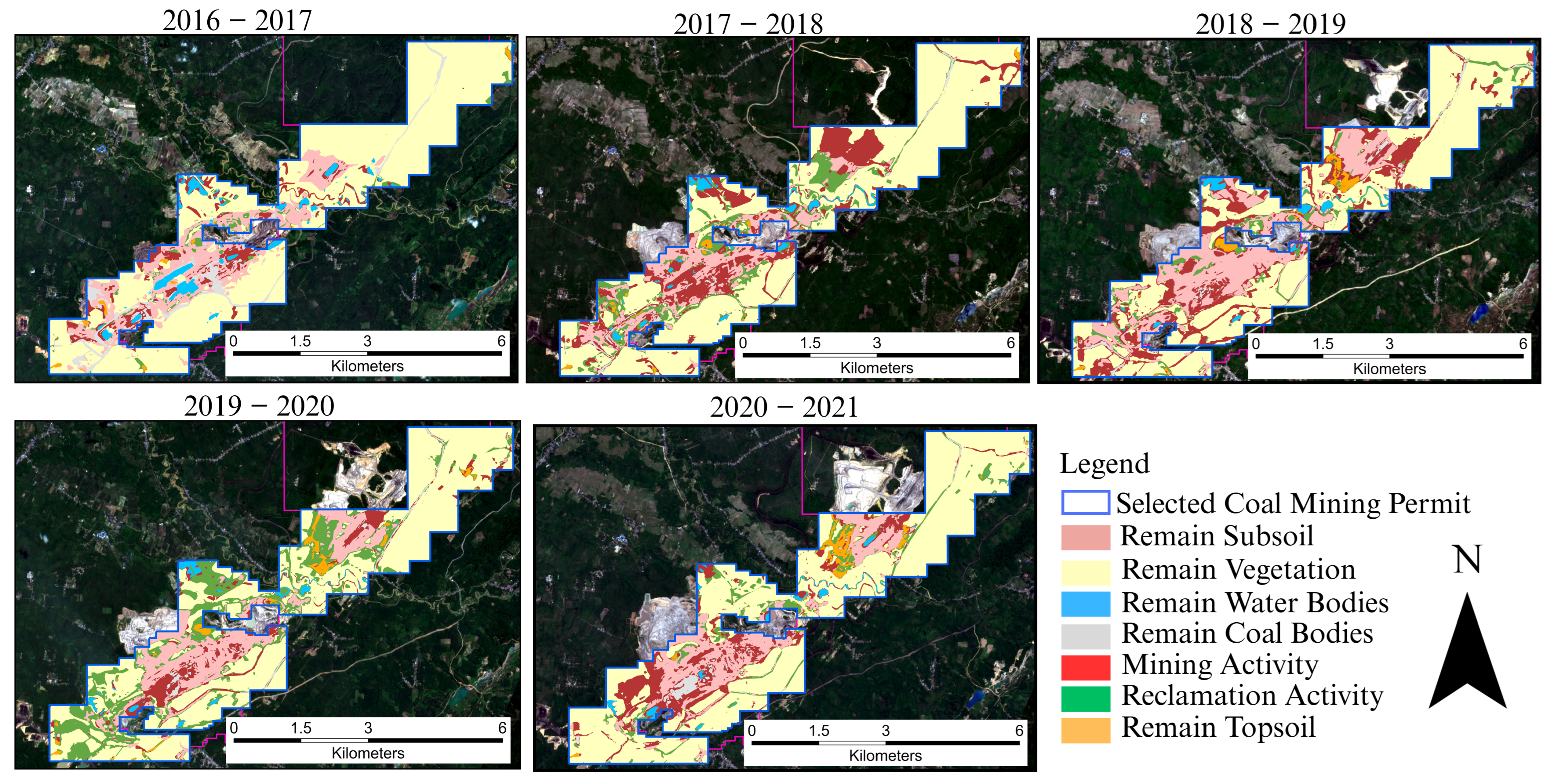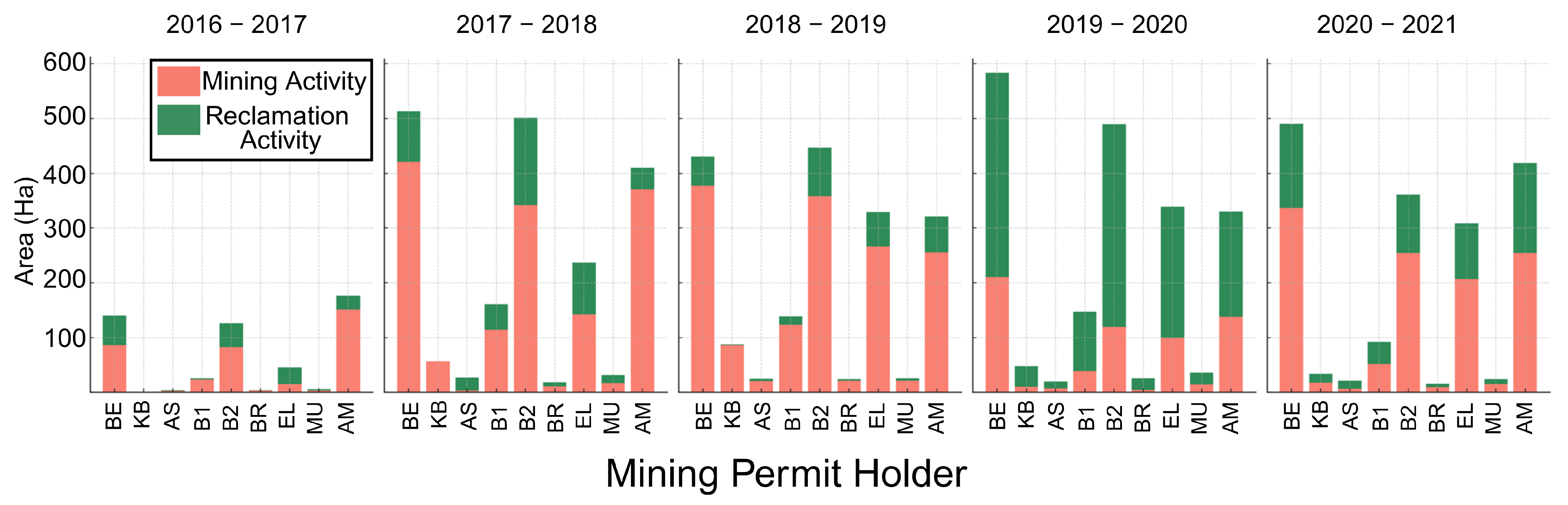 Multitemporal mining and reclamation activity each coal mining permit holder.