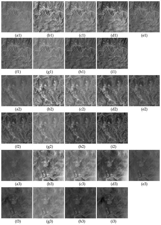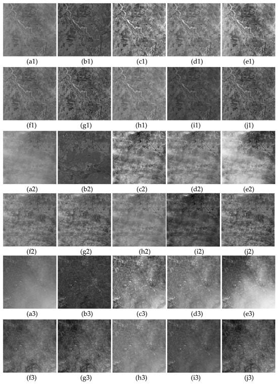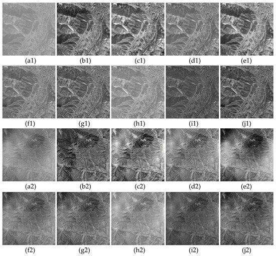 There are also some fusion-based dehazing methods that have achieved satisfactory results. Guo et al. [47] fused the transmission obtained by DCP and the transmission calculated based on the constraints to generate the final transmission. Hong et al. [48] divided the hazy image into patches, and then set a series of low-to-high transmissions manually for each patch. The physical dehazing model is used to restore each patch, and the patch with the best dehazing effect is selected for fusion. The dehazing effect of fusion-based methods is easily affected by the selection of parameters, and inappropriate parameter settings will reduce the dehazing effect. Variation-based or optimization methods have also been widely used in image dehazing. By integrating structure-aware models, the variation-based dehazing methods achieve transmission estimation and refinement [49]. Ding et al. [50] used a variation method to obtain fine depth information of the scene, and then computed the transmission using a physical model. Meng et al. [51] incorporated a constraint into an optimization model to estimate the unknown scene transmission. Liu et al. [52] introduced a novel variational framework for nighttime image dehazing that leverages hybrid regularization to enhance visibility and structural clarity in hazy scenes. Although many optimization methods for variational problems were proposed [53,54], the variation-based dehazing algorithms easily fall into the local optimal solution, and sometimes can not achieve a satisfactory dehazing effect. Image enhancement methods can increase the contrast of the image and highlight the detail information, which is suitable for the dehazing of panchromatic images. Jang et al. realized the dehazing of optical remote sensing images by using a hybrid intensity transfer function based on Retinex theory [55]. Khan et al. achieved dehazing by enhancing the detail information of hazy images through wavelet transforms [56]. The image-enhancement-based dehazing methods sometimes lead to the phenomenon of the oversaturation of intensity, resulting in the loss of detailed information in the dehazed image.