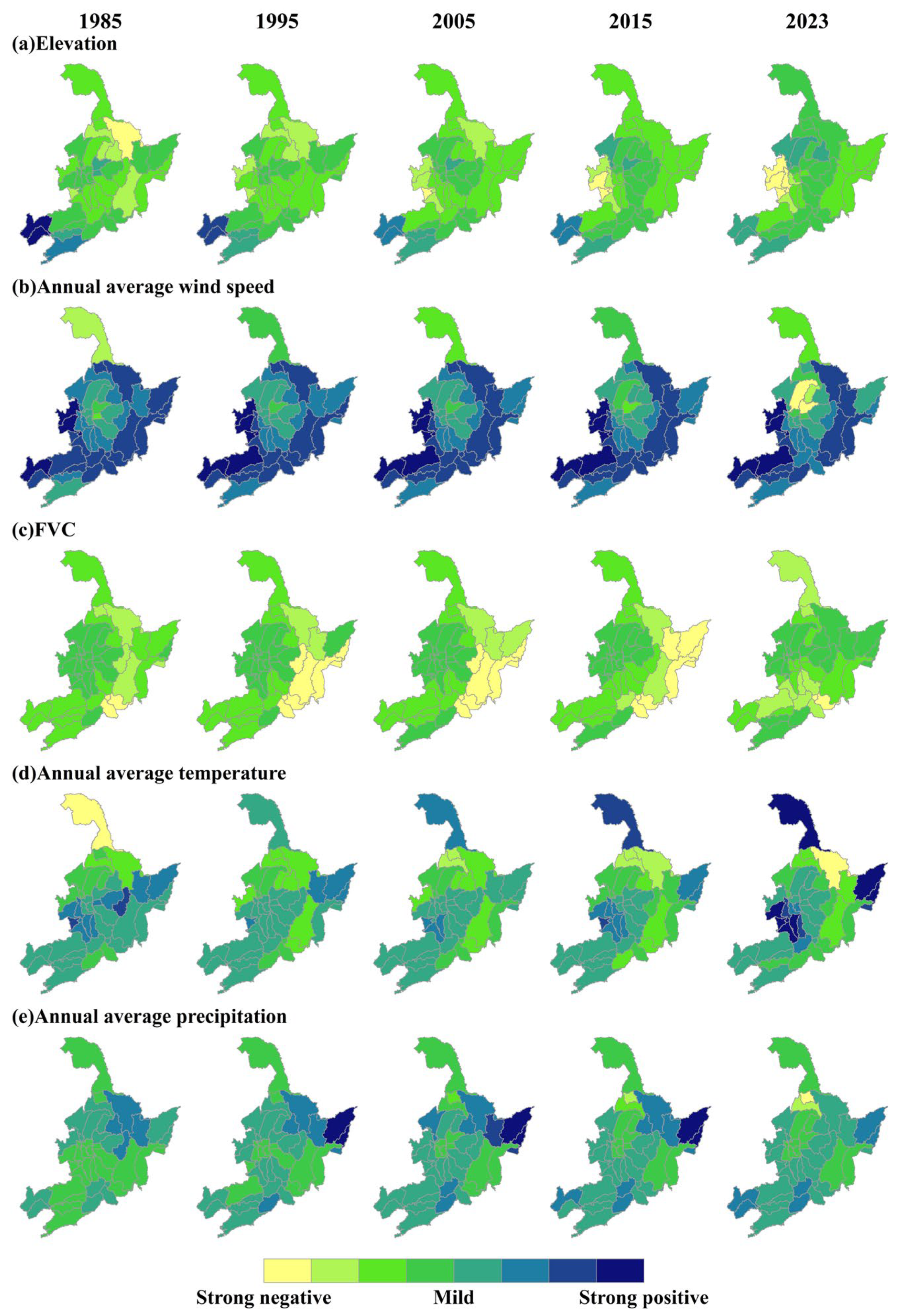 3.5.2. Spatiotemporal Influence of Environmental Factors Based on GTWR