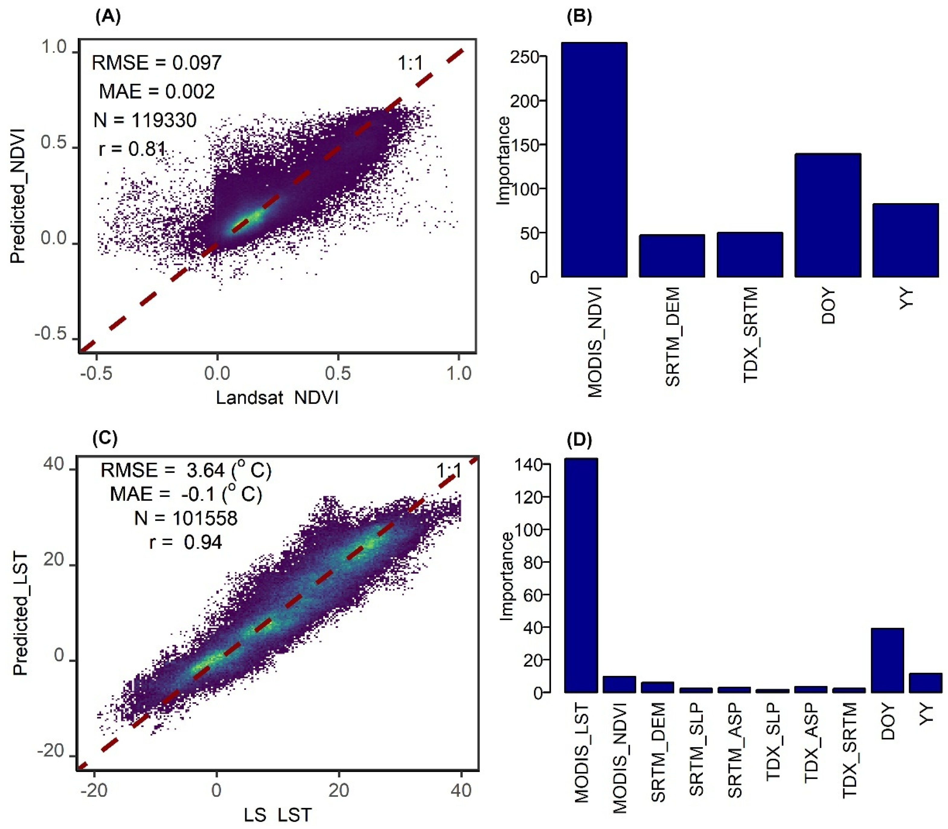 3.2. Comparison of Landsat LST, MODIS LST and Downscaled LST