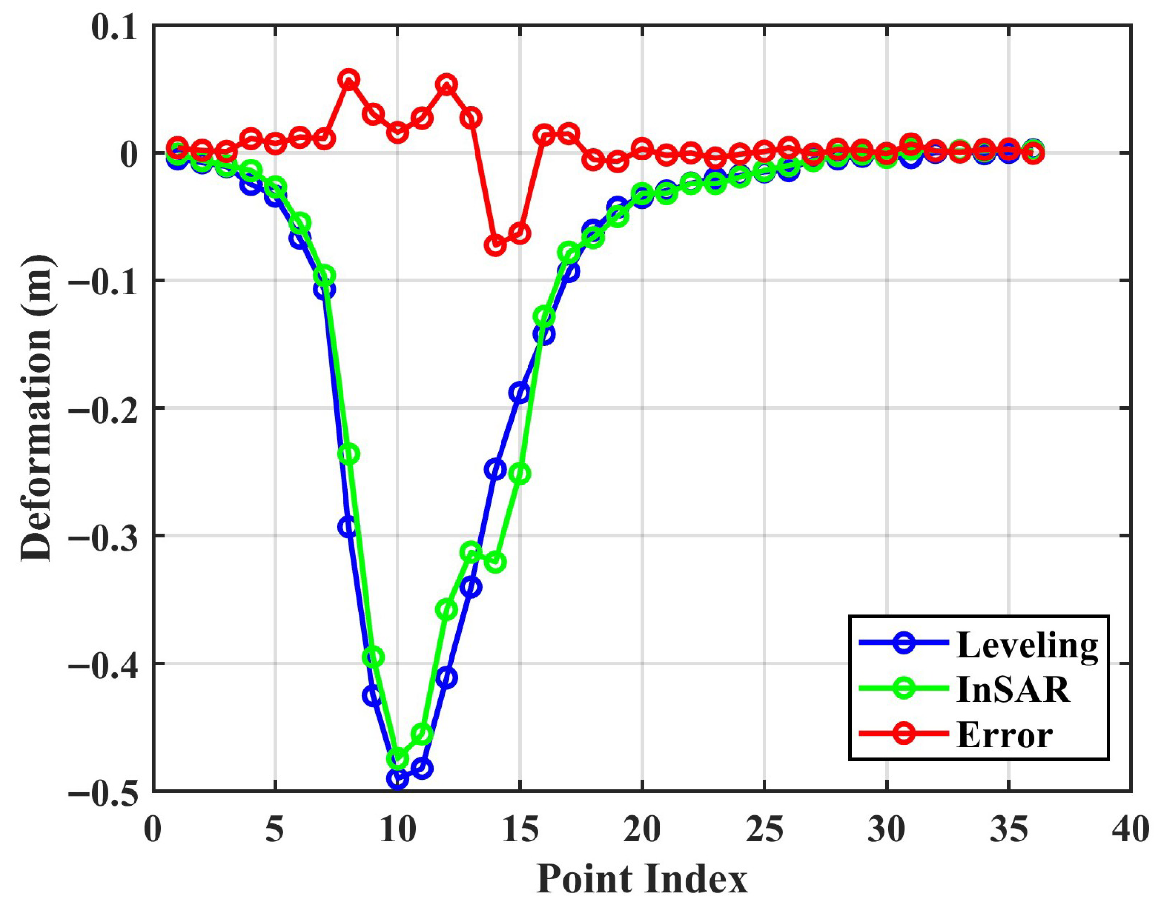 3.1. Simulation of InSAR-Derived Deformation Observations