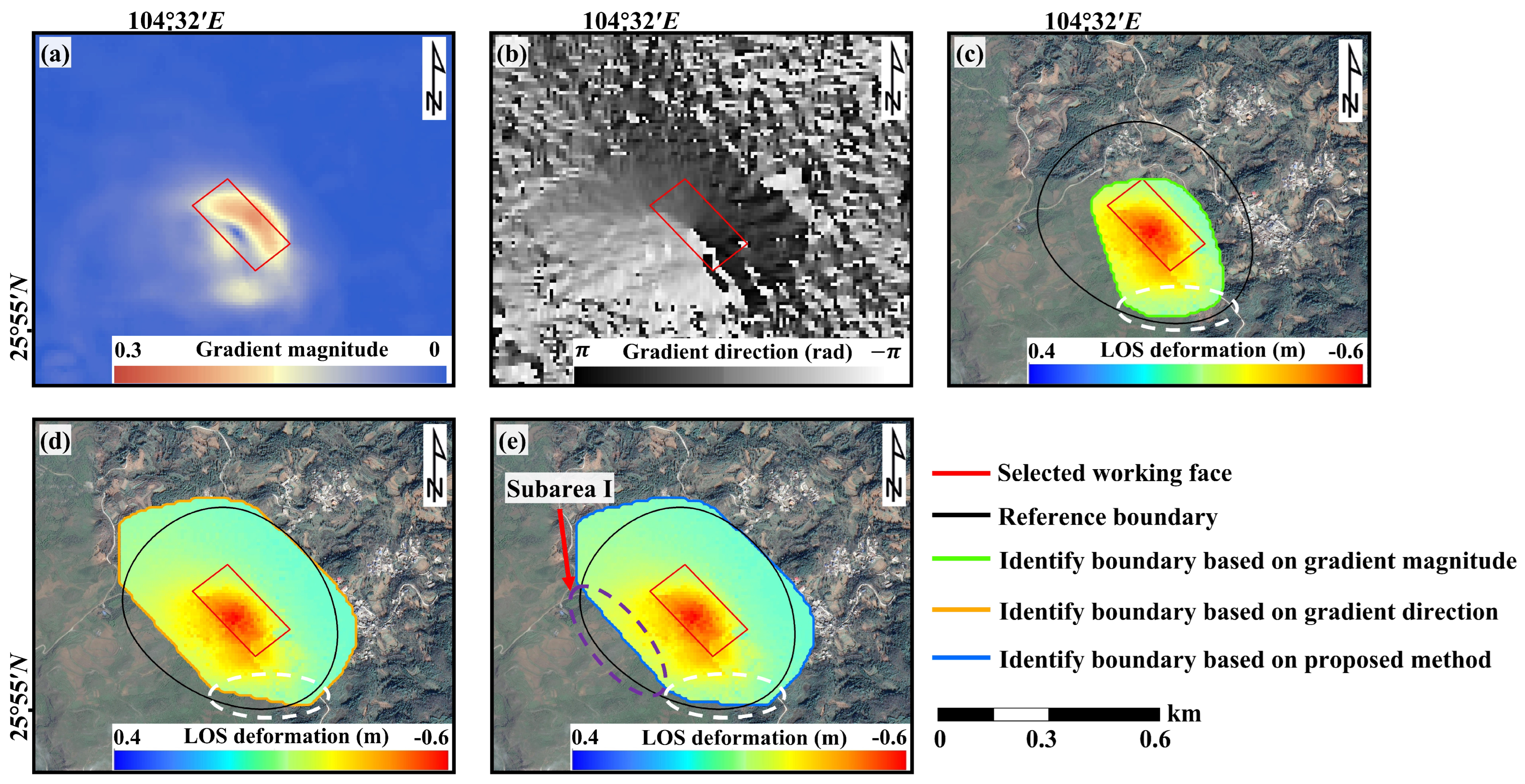- A novel method (DMSB-DG) was developed that integrates both magnitude and direction of InSAR-derived deformation gradients with ISODATA clustering to delineate mining-induced subsidence boundaries.