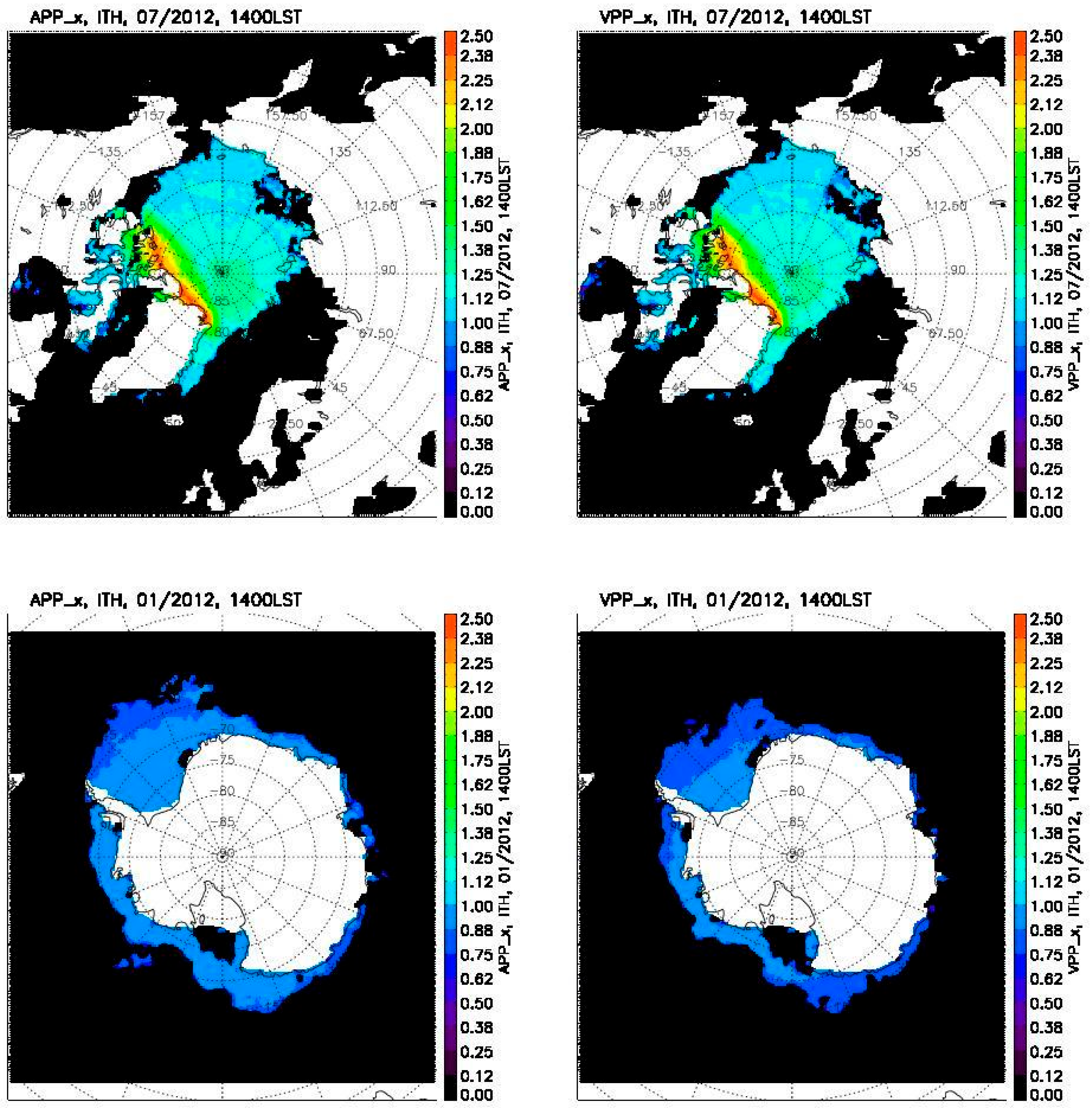 - Wang, X.; Key, J.; Kwok, R.; Zhang, J. Comparison of sea ice thickness from satellites, aircraft, and PIOMAS data. Remote Sens. 2016, 8, 713. [Google Scholar] [CrossRef]