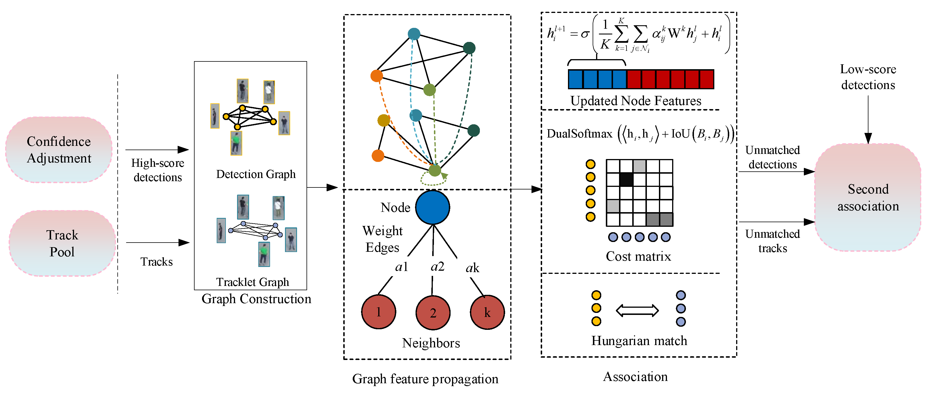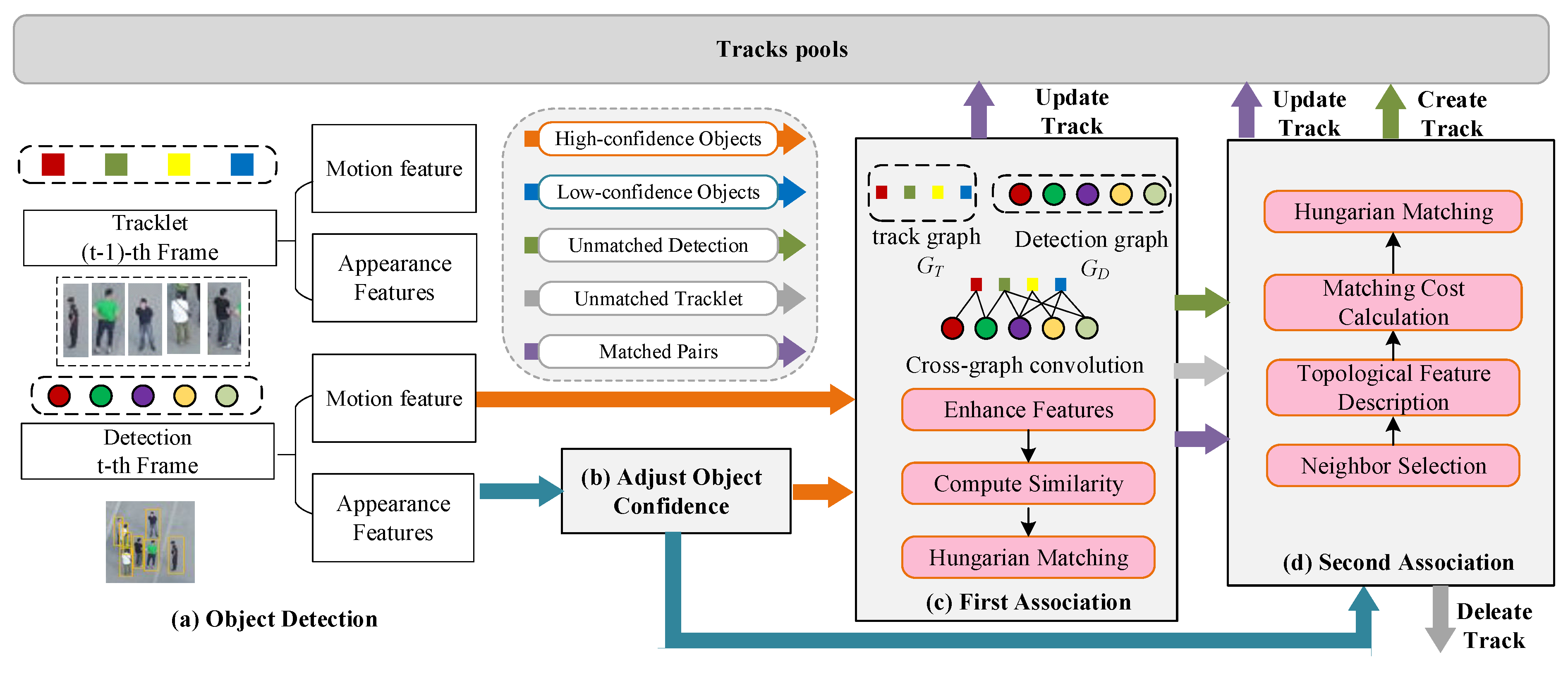 - Zhang, Y.; Liang, Y.; Leng, J.; Wang, Z. SCGTracker: Spatio-temporal correlation and graph neural networks for multiple object tracking. Pattern Recognit. 2024, 149, 110249. [Google Scholar] [CrossRef]