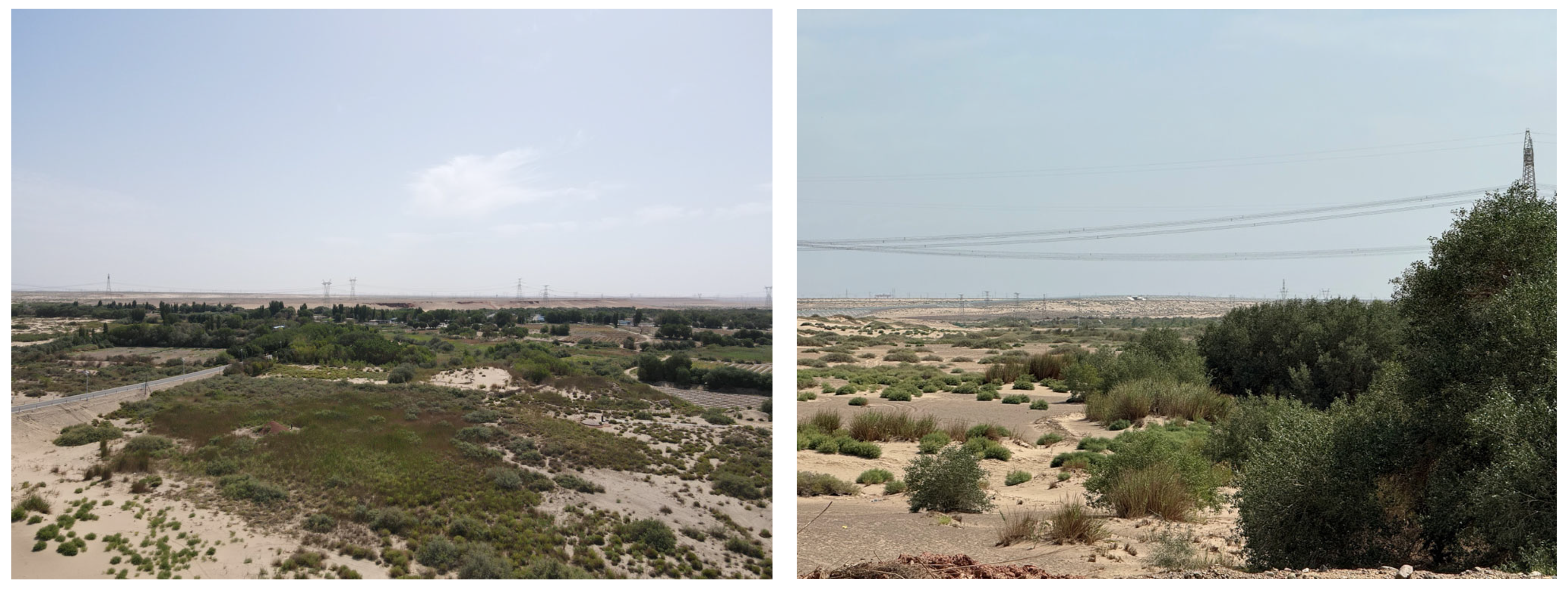 - Yu, X.; Lei, J.; Gao, X. An over review of desertification in Xinjiang, Northwest China. J. Arid Land 2022, 14, 1181–1195. [Google Scholar] [CrossRef]