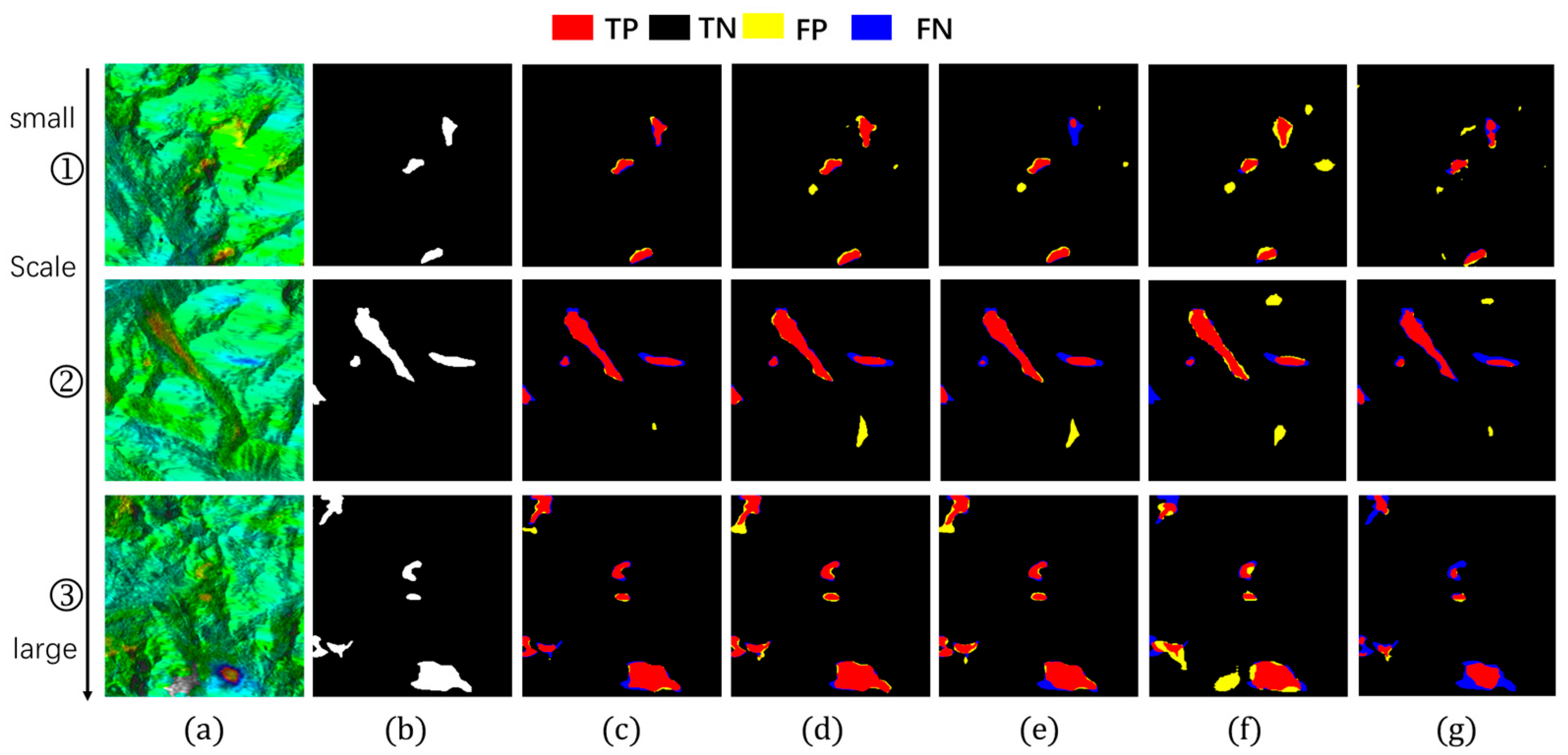 - TP (True Positives): Correctly predicted landslide deformation pixels;