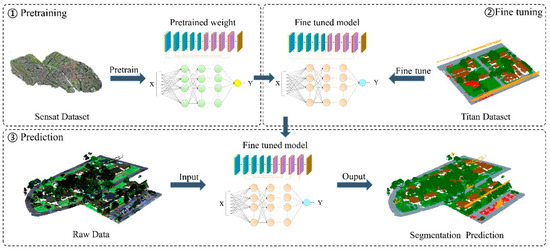 Recent work has also explored transfer learning using large-scale real-world point cloud datasets. In 2023, Zhou et al. [61] proposed TSANet, a semantic segmentation network combining sampling and attention mechanisms; by leveraging transfer learning, it reduced data dependency and demonstrated high accuracy and efficiency on the Cambridge and Birmingham urban point cloud datasets. Similarly, Enes et al. [62] integrated RandLA-Net with transfer learning, achieving competitive segmentation accuracy across point cloud datasets from three Chinese cities.