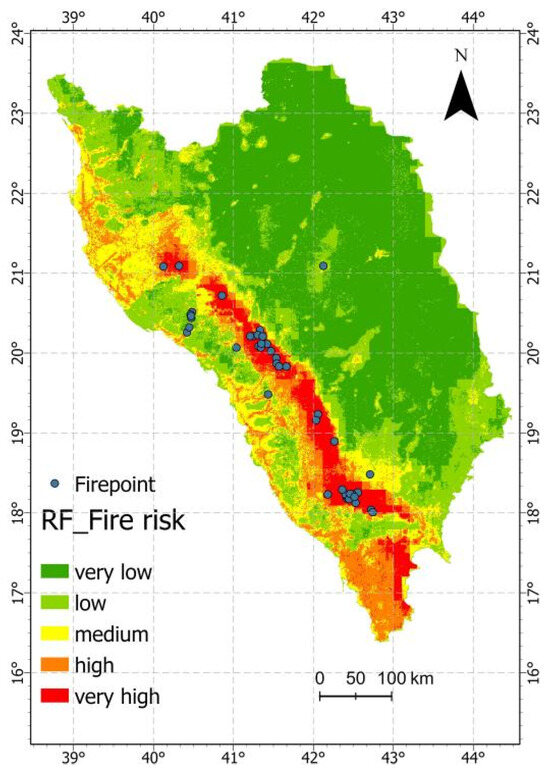 - In southwestern Saudi Arabia, vegetation cover and human activity were identified as the dominant drivers of wildfire occurrence, with clear clustering in high-elevation mountainous areas.