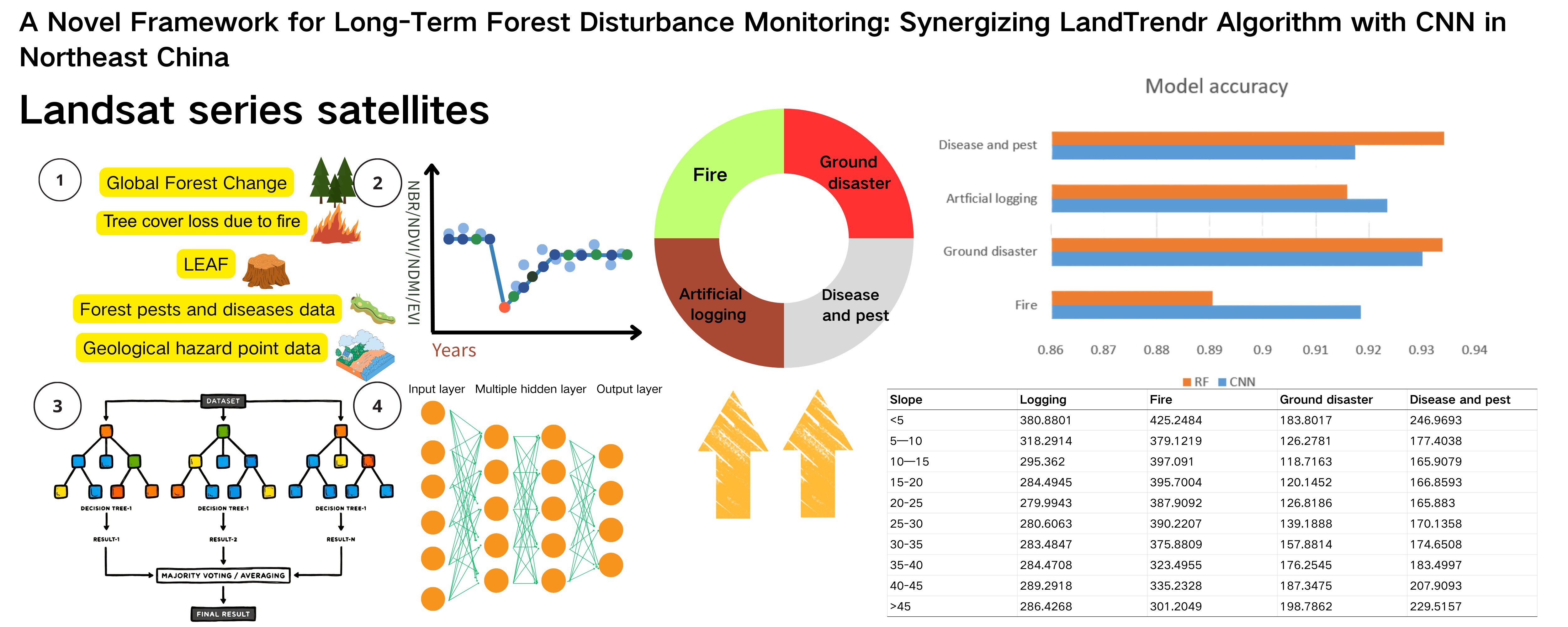 - A LandTrendr-CNN framework achieves 92.26% accuracy in classifying forest disturbances.