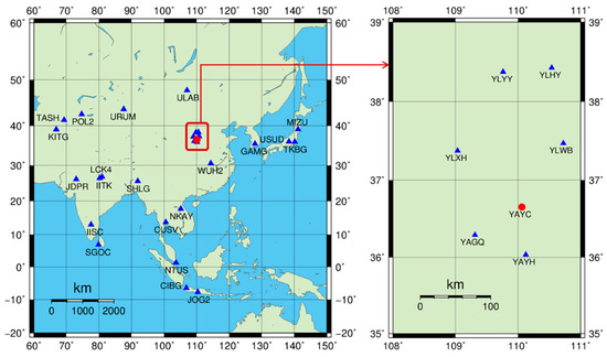 Station distribution for CCB extraction and atmospheric-enhanced PPP validation.