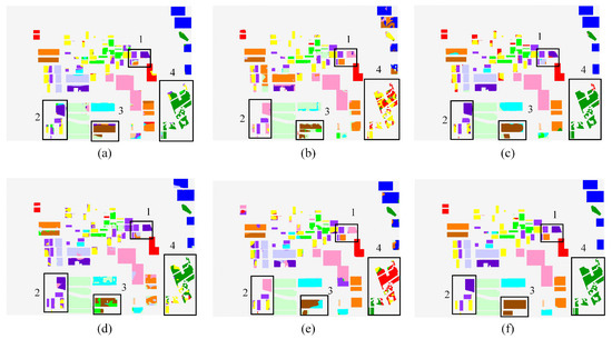 For Flevoland dataset 1, the semantic segmentation results of LAM-CV-BiSeNetV2 and other RV networks are presented in Figure 9a–f, respectively. In each figure of different networks, there are four parts marked by black boxes.
