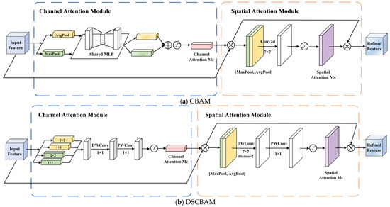 Comparison of network structures between CBAM and DSCBAM.