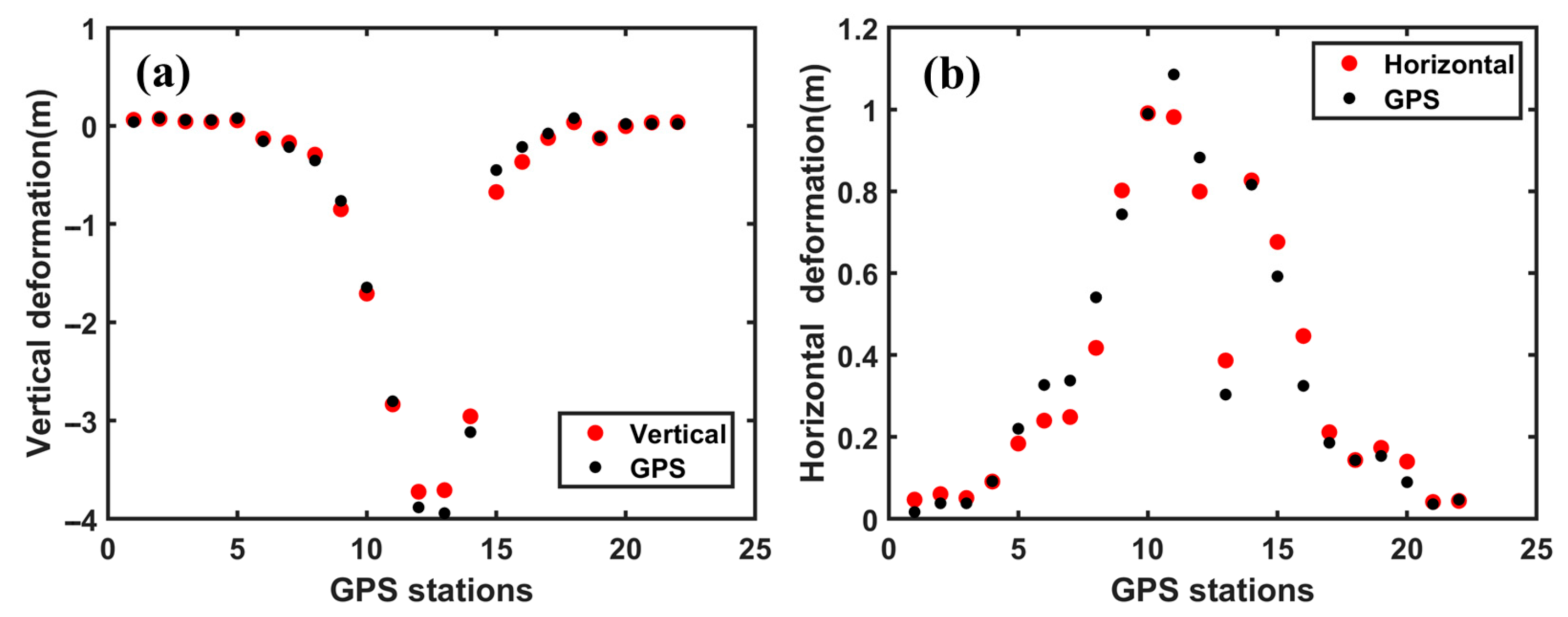 5.3. Three-Dimensional Displacement Inversion of the Mining