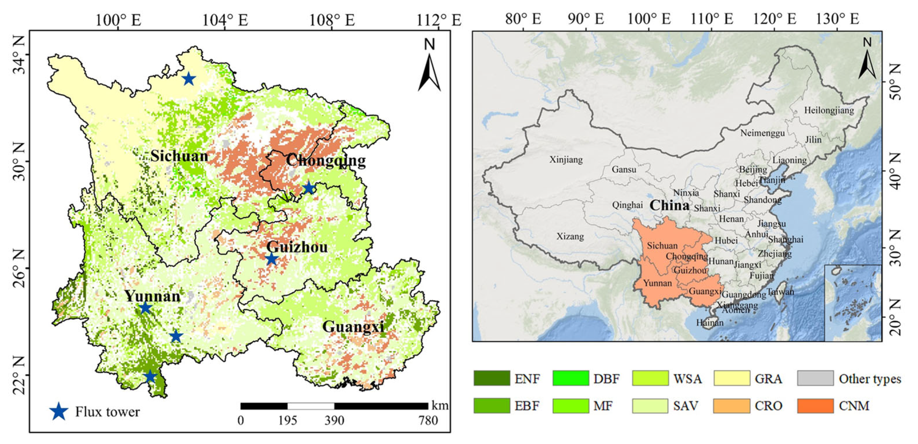 | 2 | YJ | 23.47 | 102.17 | Forest | 2014–2015 |