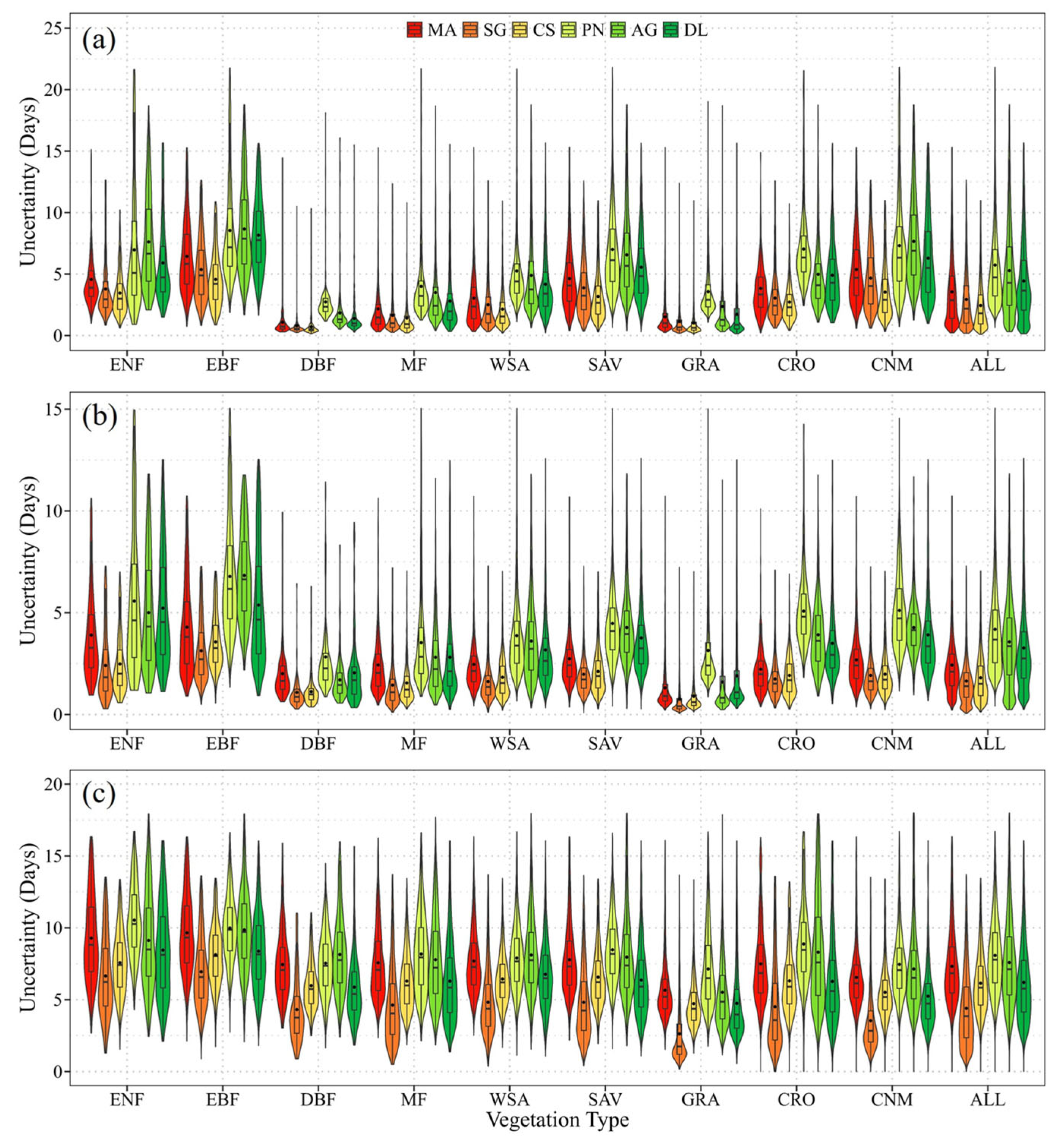 3.2. Uncertainty Analysis of Phenology Obtained by Different Curve-Fitting Methods