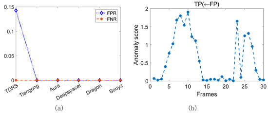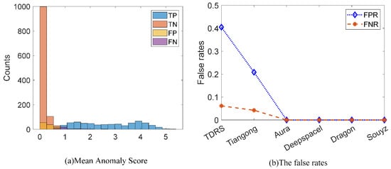 Performance evaluation of FCDD-GRU-Att. (a) False rates of different targets; (b) Anomaly scores of a sequence from FPs to TPs.