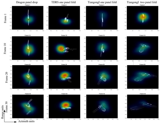 Afterwards, the equal accumulation time model is used to construct the ISAR sequences to ensure phase consistency between frames. Diverse initial attitudes are generated for each sequence to result in different attitudes. According to Table 2, the coherent time for imaging is 0.6 s, and the interval between each imaging frame is 10 s. Eventually, an ISAR image sequence of 36 frames is generated for each lap.