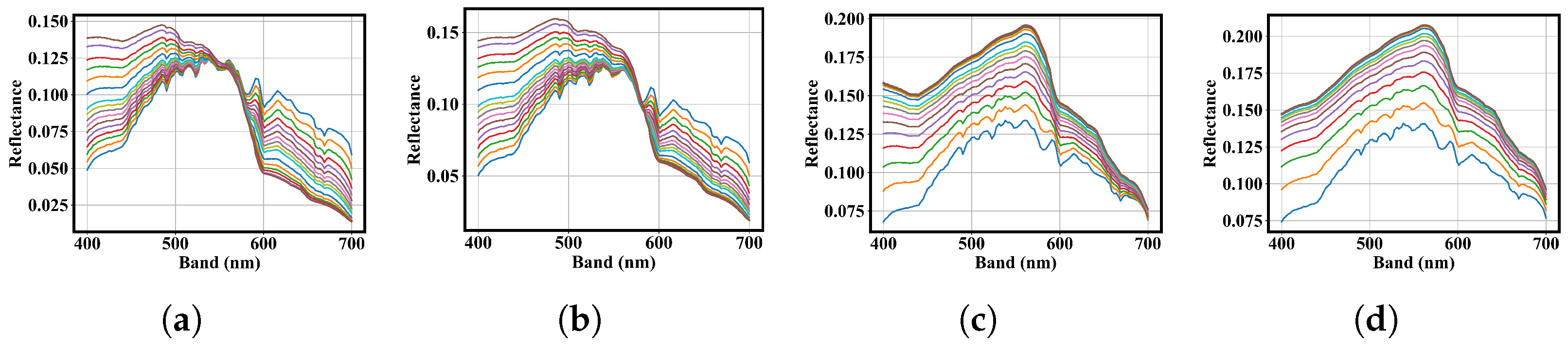 21]. Lee et al. proposed a model to resolve the spectral properties of seawater across the visible to infrared ranges, considering factors such as bottom reflectivity, chlorophyll or CDOM absorption, and backscattering from the water column [