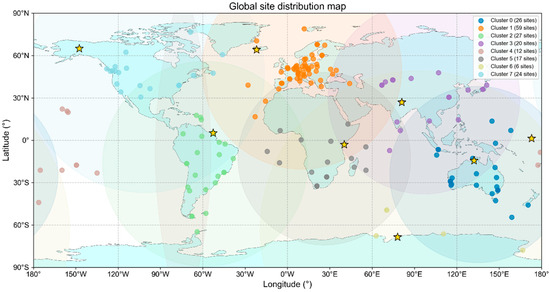 (1) Normalization to the Unit Sphere. Acknowledging that the station distribution is on a sphere rather than a plane, the k-means algorithm is adapted to use spherical distance. This requires first normalizing the three-dimensional Earth-Centered, Earth-Fixed (ECEF) coordinates of each station onto a unit sphere: