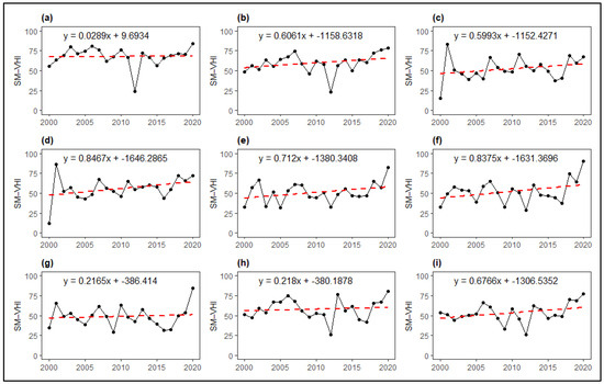 3.2.5. Vegetation Health Index (VHI)