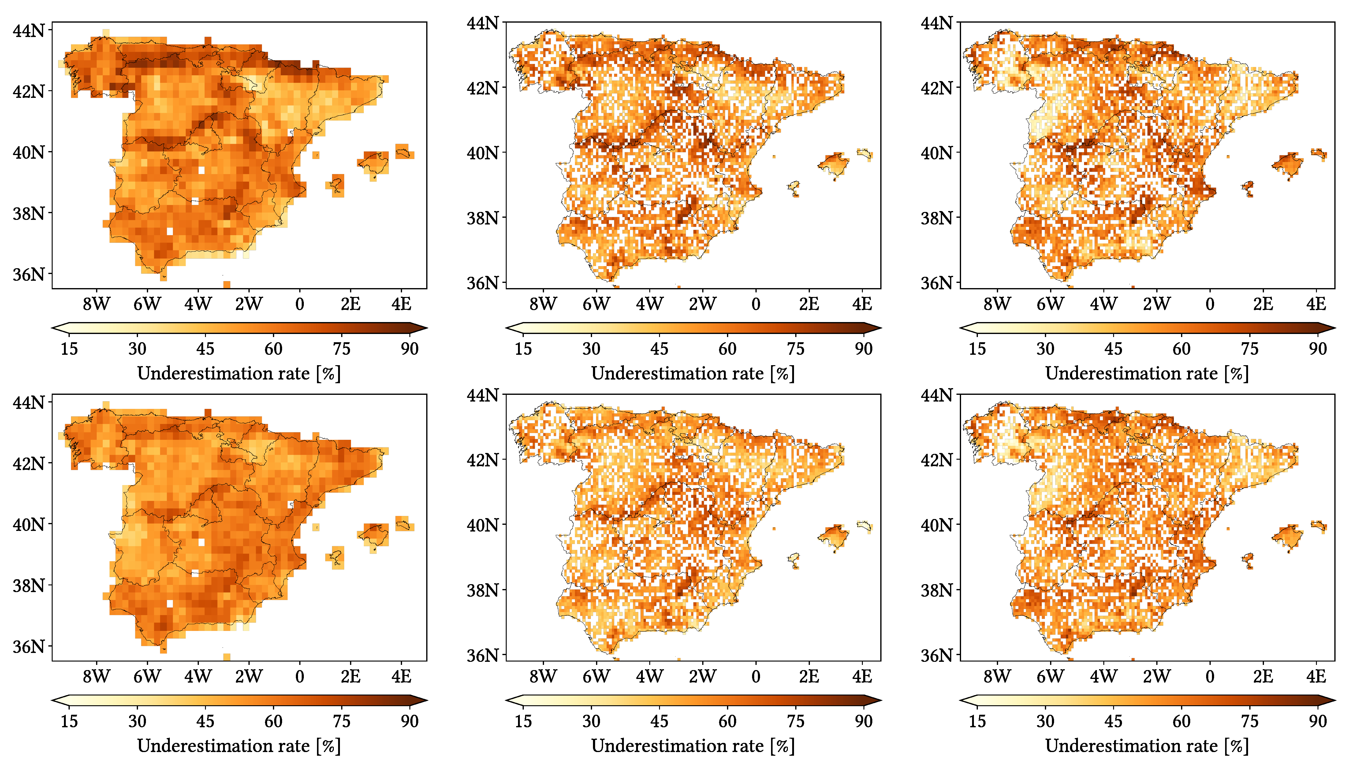 The main contributions of this study are the assessing and comparison of the performance of these three SPPs across Peninsular Spain and Balearic Islands and the quantitative investigation on a possible performance dependence on certain parameters (season of year, precipitation intensity, altitude and orographic complexity), in order to correctly understand their precision and accuracy from diverse perspectives and determine whether they are appropriate tools for diverse applications in this region (hydrological modelling, trends on extreme precipitation patterns, analysis of changes in bioclimates, flood threshold exceedances, studies on agricultural water budget…). The applied methodology can be used in any region of the world with enough ground gauges, and our results could be extrapolated to other regions with similar climatic traits.