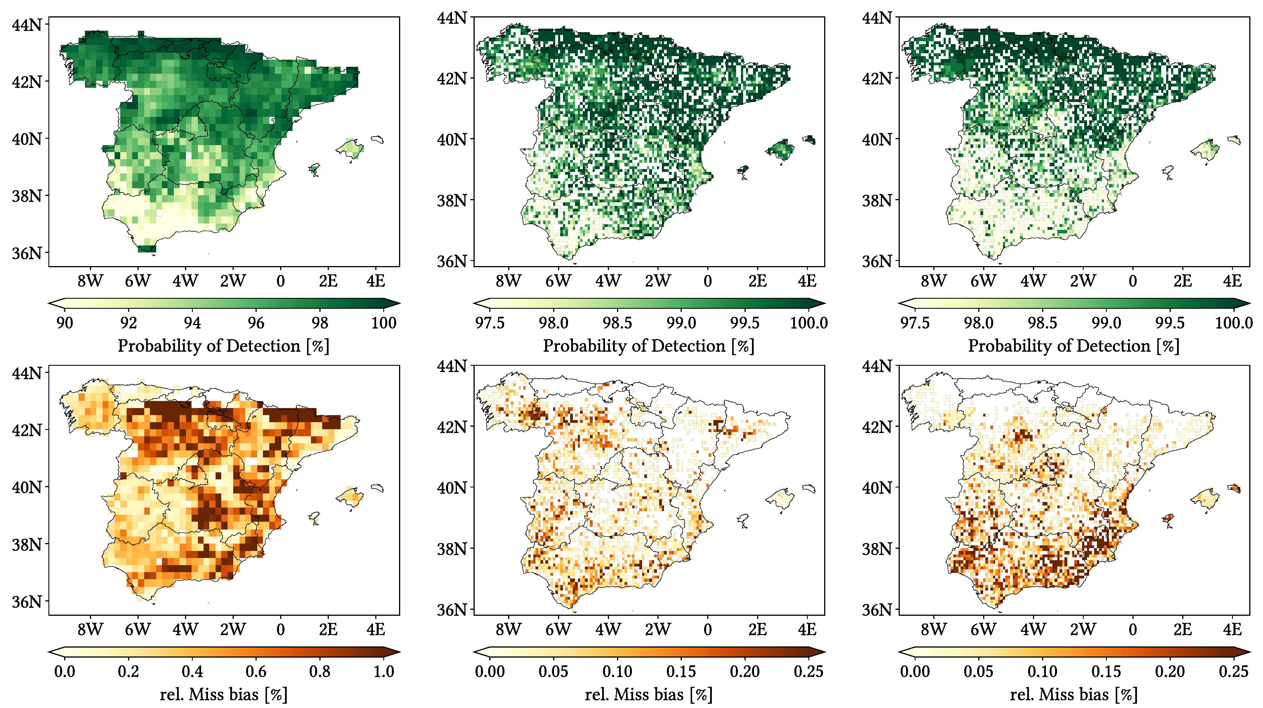 • Worst performance occurs in those regions with simultaneously high orographical complexity, annual precipitation and altitude. Heavier intensities are easily detected but notably underestimated. Performance is more predictable in spring and autumn.