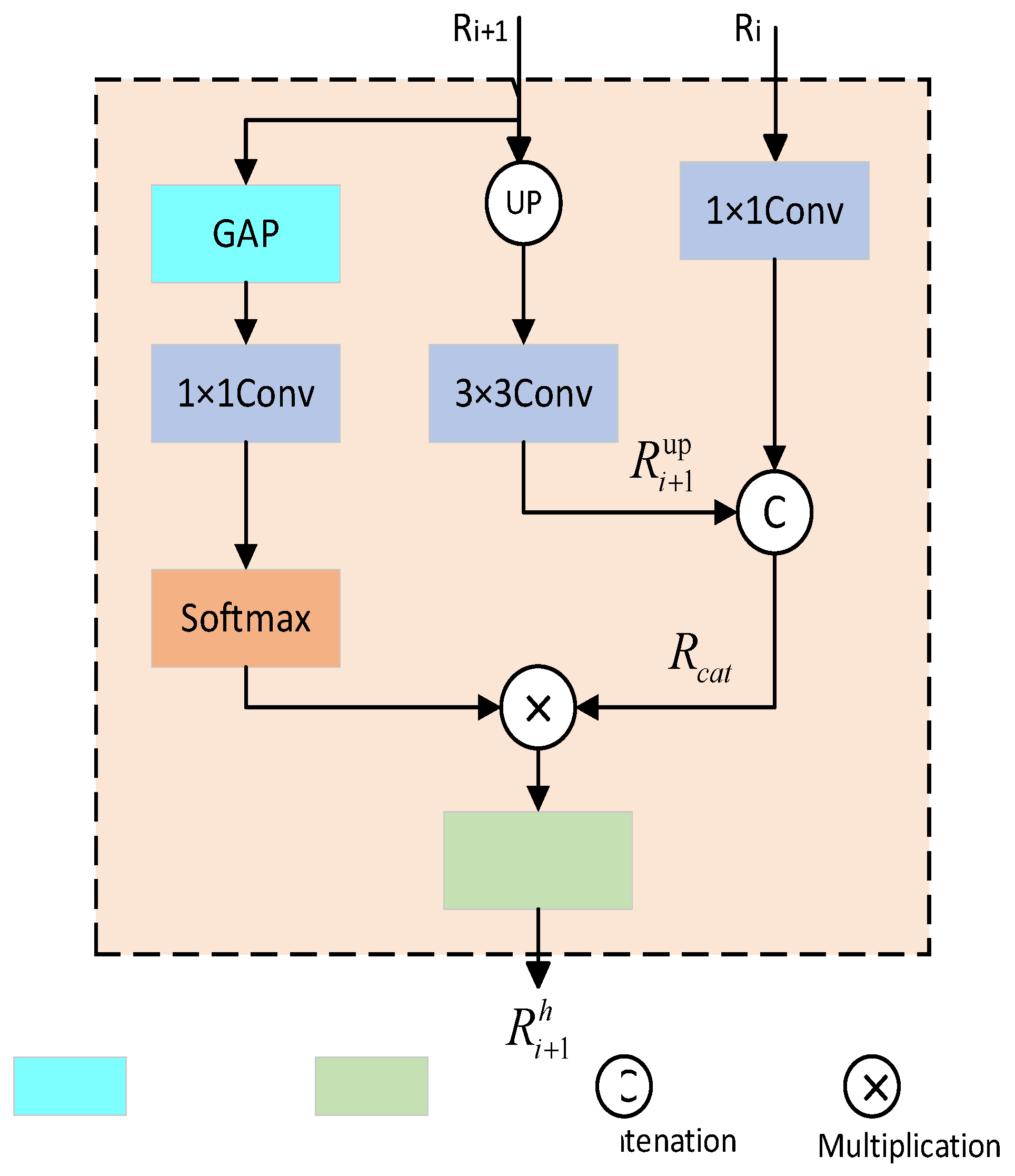 - Niu, R.; Sun, X.; Tian, Y.; Diao, W.; Chen, K.; Fu, K. Hybrid multiple attention network for semantic segmentation in aerial images. IEEE Trans. Geosci. Remote Sens. 2022, 60, 5603018. [Google Scholar] [CrossRef]
