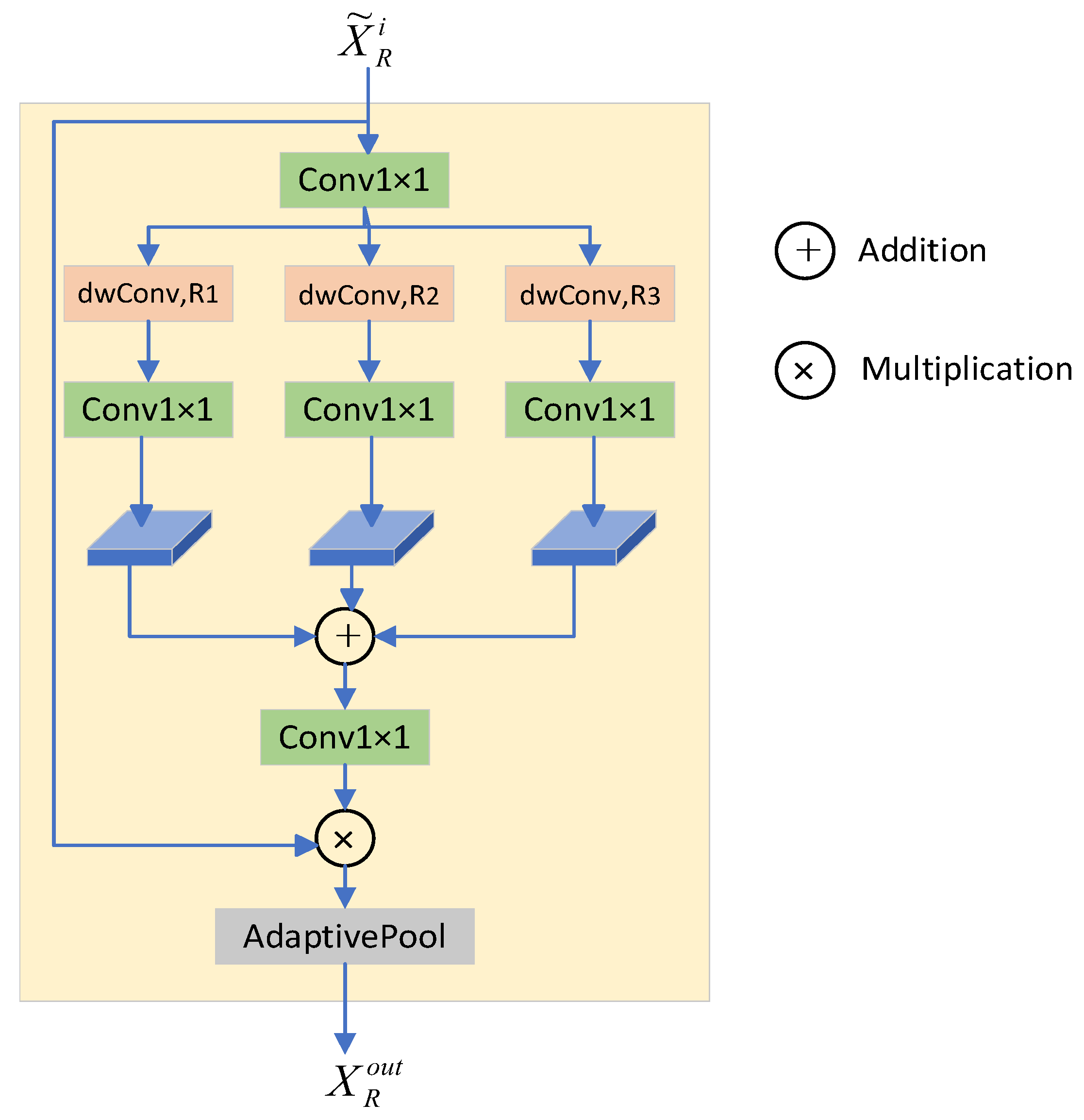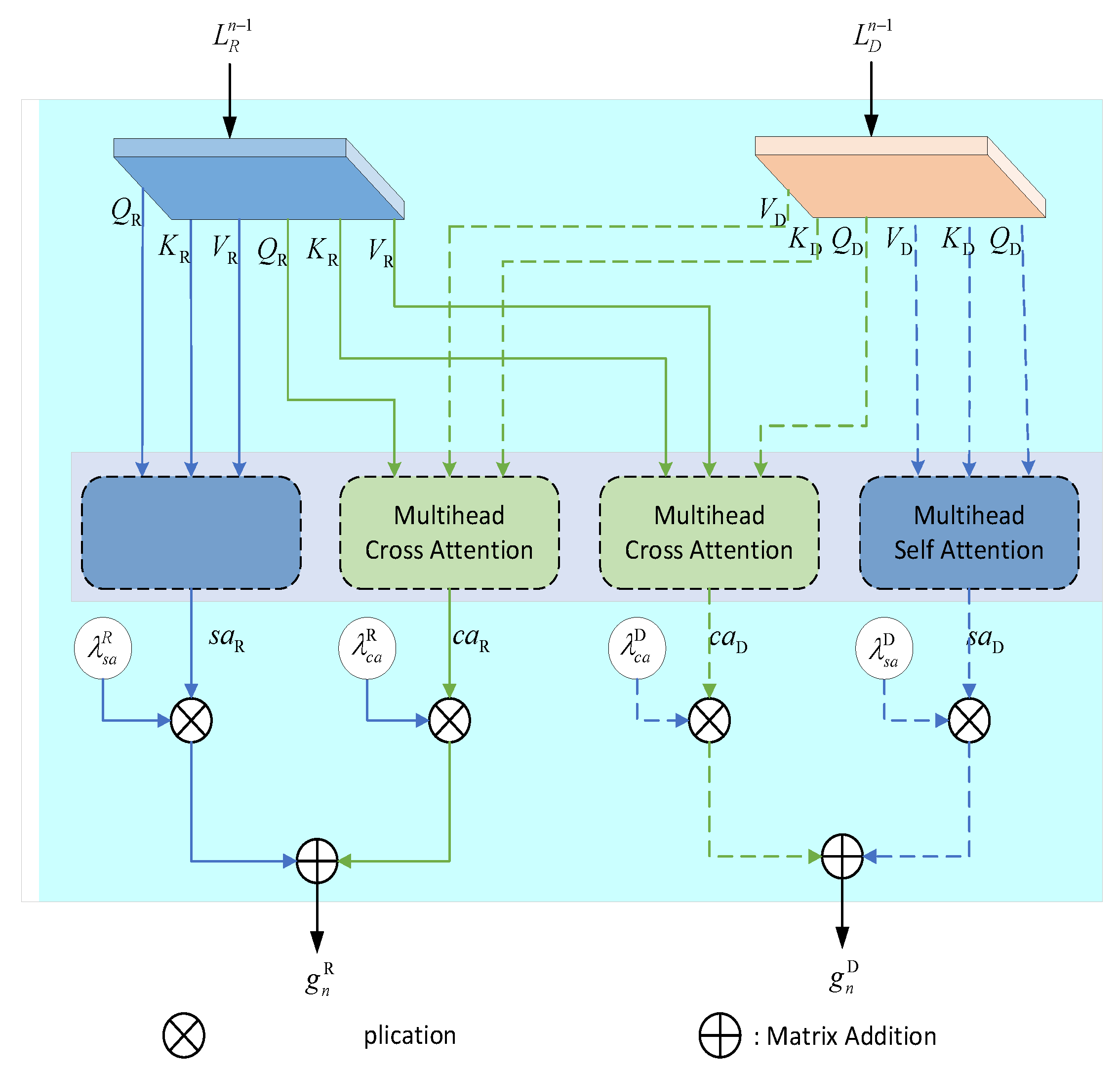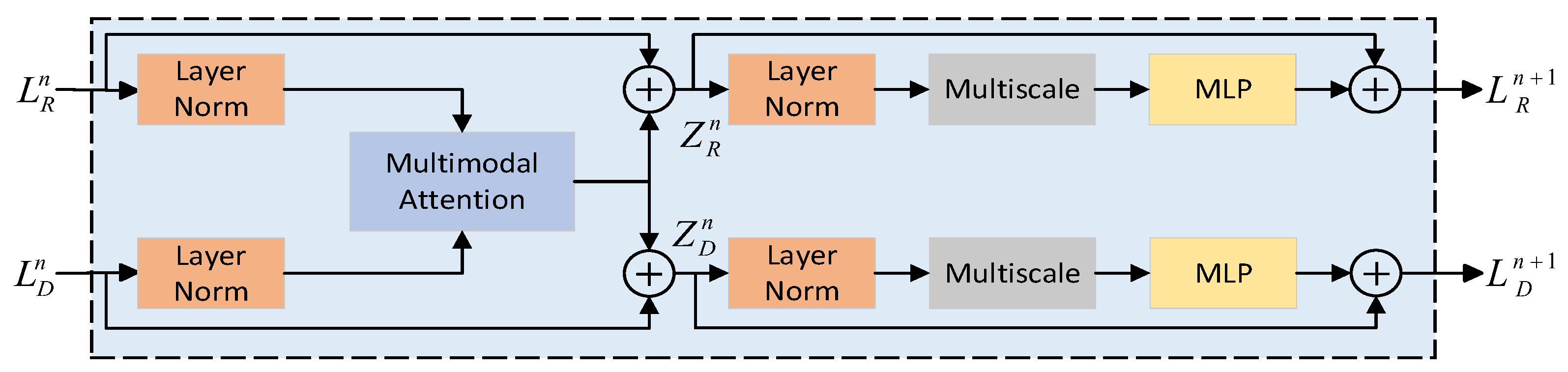 - This paper proposes an MSMA, which integrates Self-Attention (SA) and Cross-Attention (CA) to enable simultaneous capture of intra-modal local context and inter-modal complementary features. Adopting a three-layer structural design, this block effectively models the long-range correlations between RGB and DSM modalities. Moreover, we innovatively incorporate multi-scale depthwise separable convolutions into the attention block, which enhances the network’s ability to model ground objects of varying scales without significantly increasing computational cost.