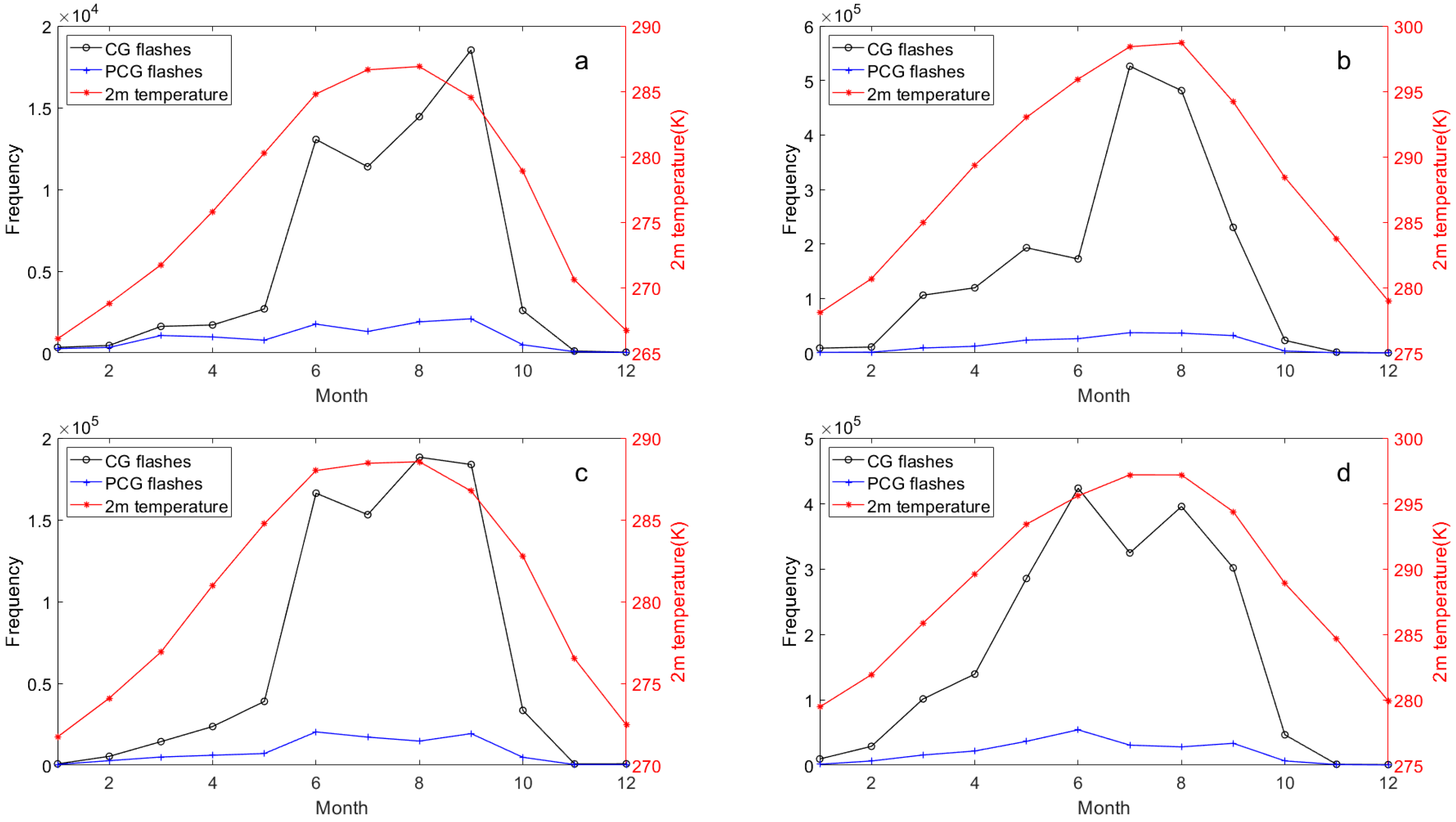 - Toumi, R.; Qie, X. Seasonal variation of lightning on the Tibetan Plateau: A Spring anomaly? Geophys. Res. Lett. 2004, 31, L04115. [Google Scholar] [CrossRef]