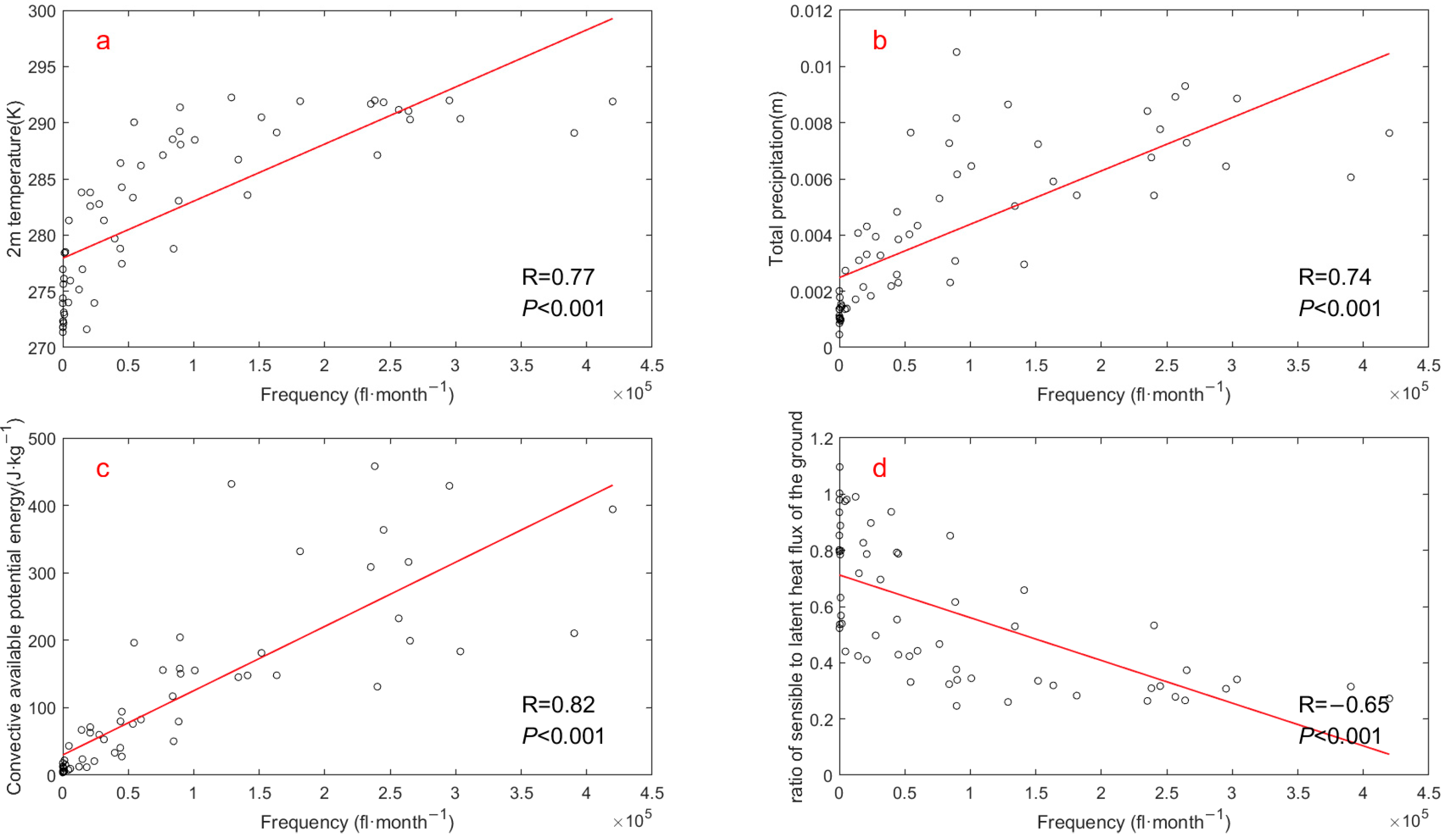 - Li, J.; Wu, X.; Yang, J.; Jiang, R.; Yuan, T.; Lu, J.; Sun, M. Lightning activity and its association with surface thermodynamics over the Tibetan Plateau. Atmos. Res. 2020, 245, 105118. [Google Scholar] [CrossRef]