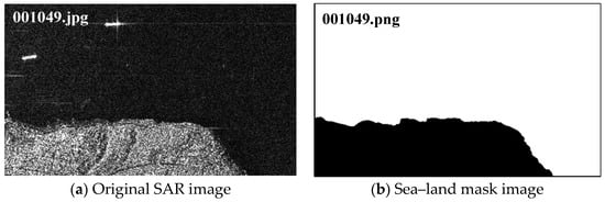 In a word, this oversight may lead to false alarms from land-based interference (e.g., containers and coastal structures) and missed detections of inshore ships caused by insufficient attention on valuable regions (sea region and ship region), thereby reducing overall detection accuracy. The potential reason for this oversight lies in the fact that public deep learning-based SAR ship detection datasets lack sea–land segmentation information usable as auxiliary data—information that researchers could otherwise leverage to guide ship detection. On the contrary, most SAR imaging products [48,49] could match sea–land division information (usually through shoreline datasets [50]), which is widely used in engineering to assist in ship detection (for example, when the SNAP software processes Sentinel-1 SAR imaging products, it uses a shoreline database to generate land mask as sea–land segmentation information to assist ship detection). Therefore, there is a need for a sea–land segmentation dataset that functions as a synergistic resource for ship detection in the deep learning community. Furthermore, a method capable of being fully aware of the difference between sea regions and land regions is urgently required to achieve more accurate ship detection performance.