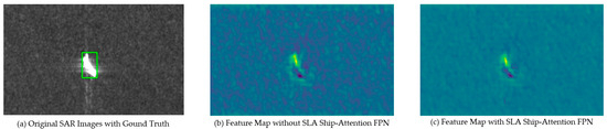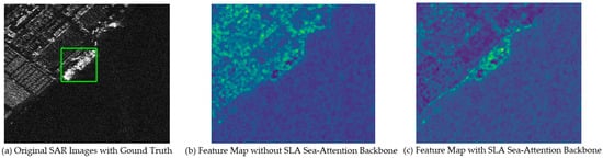 In conclusion, the SLA Sea-Attention Backbone makes the network fully aware of sea regions by utilizing sea–land segmentation masks and Mask Attention Block. This reduces the network’s training difficulty by introducing prior knowledge (i.e., ship location) to the network and achieves coarse attention for SLA Hierarchical Attention mechanism, leading to better detection accuracy by directly and adaptively enhancing sea features in the feature maps while suppressing land features.