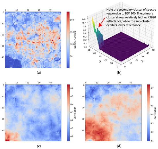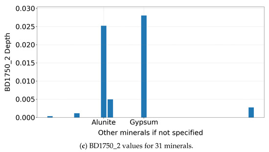 - We clip any summary product values below zero to zero, although the formula for summary products does not specify a minimum bound. We refer to BD1750_2 in Equation (1), which can yield negative values, as absorption features are inherently positive by definition. This clipping approach is consistent with recommendations in the literature [14].