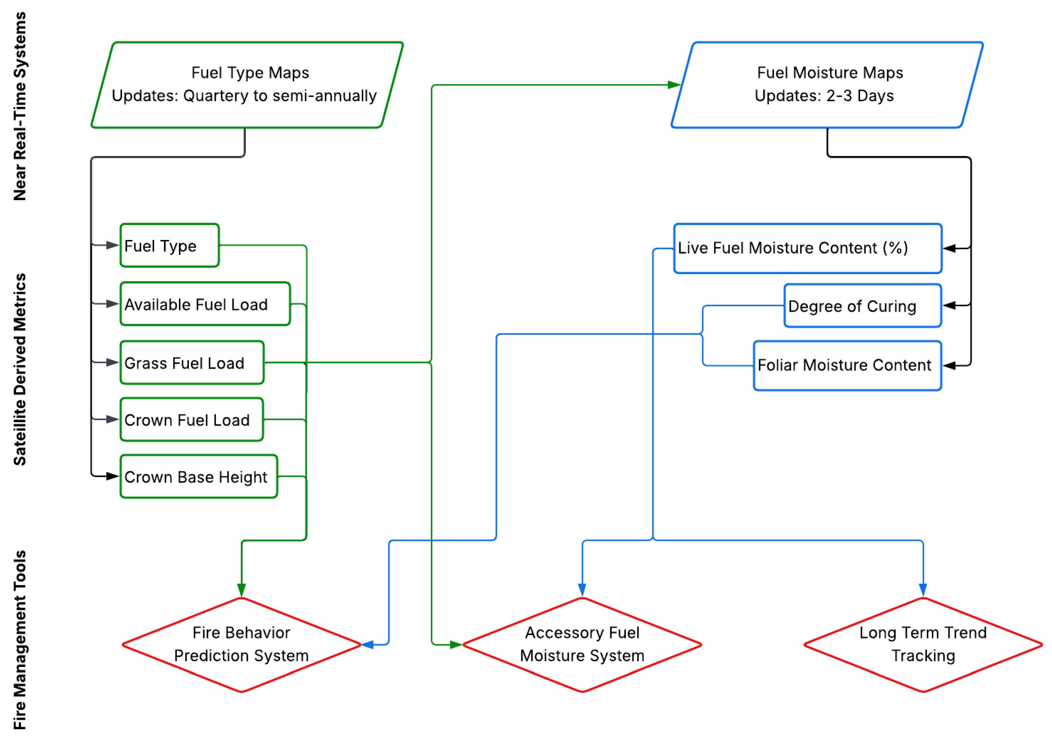 Figure 4. Diagram of how fuel type and fuel moisture spatial data products can be integrated directly into the NZFDRS.