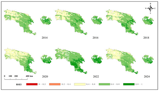 Spatiotemporal variation map of the RSEI in SNP from 2014 to 2024.