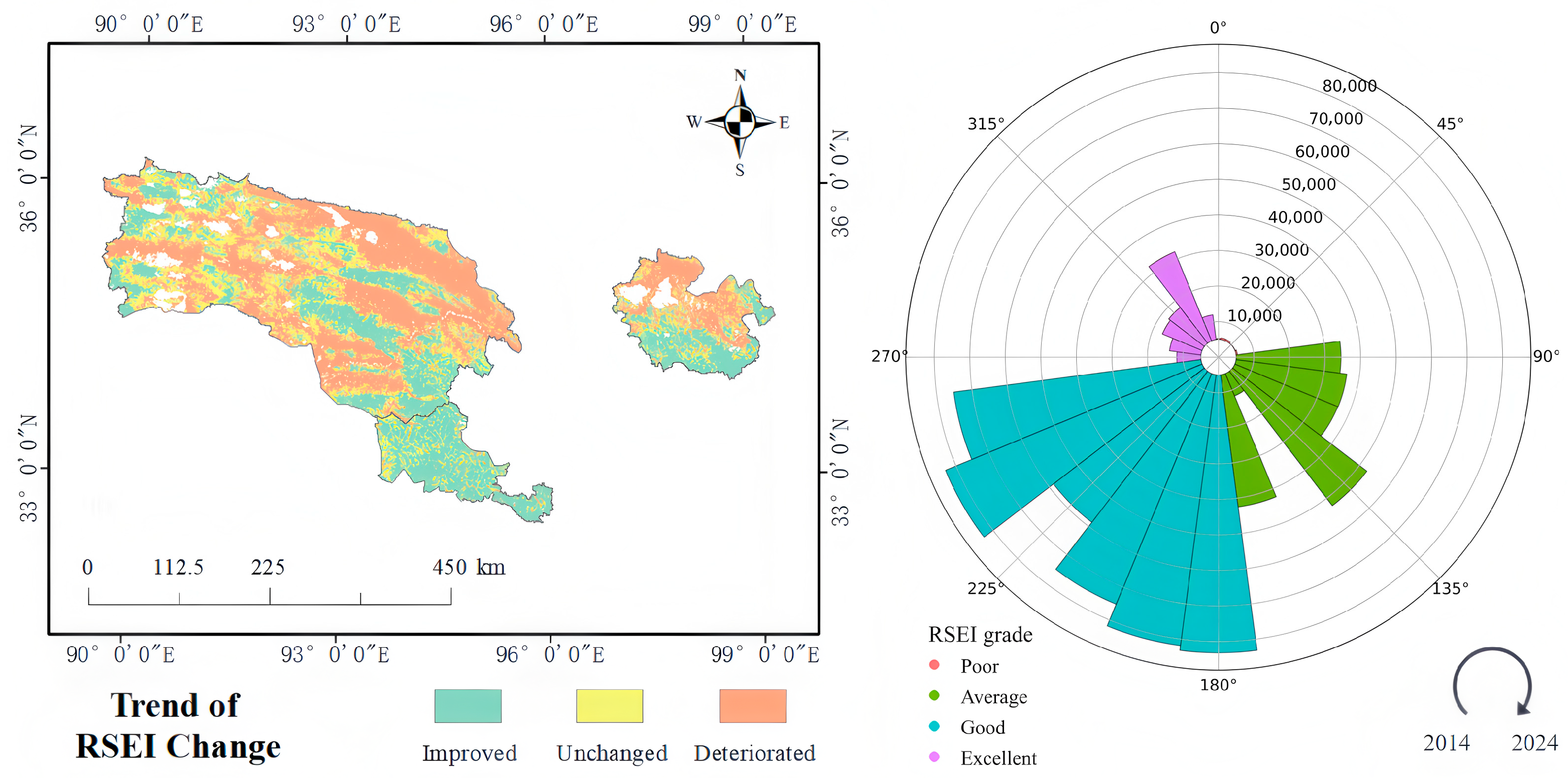 - Driving factor analysis identified temperature and human activities as the dominant factors influencing the spatial differentiation of RSEI. Temperature not only had a strong independent effect but also amplified its impact when interacting with other factors.
