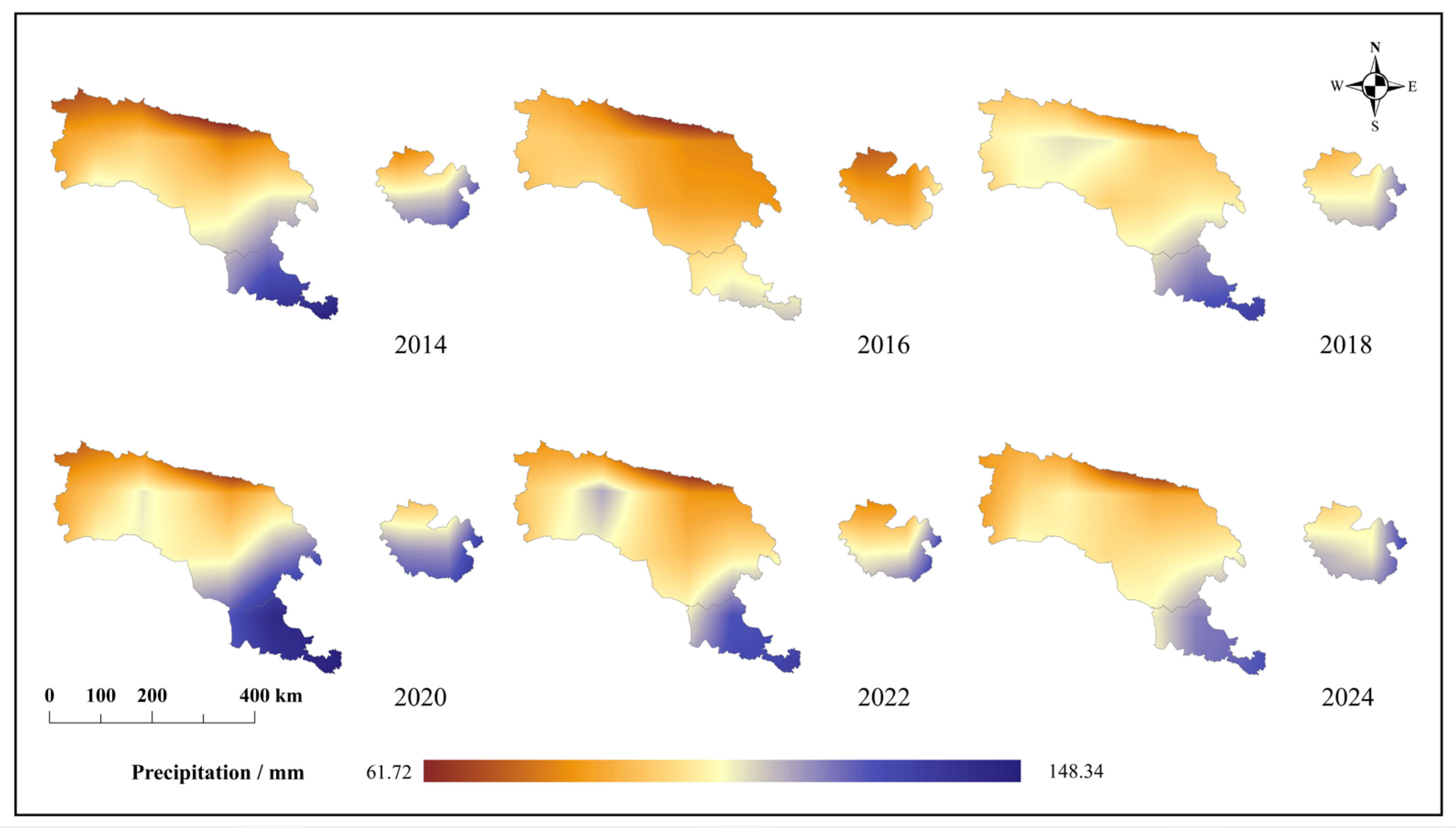 - Zeng, N.; Ren, X.; He, H.; Zhang, L.; Xu, Q.; Zhang, M.; Chen, X.; Gao, C.; Liu, C. Spatial-temporal dynamics of the grassland aboveground biomass and its association with climate changes in the Three River Source National Park. Acta Ecol. Sin. 2023, 43, 1175–1184. [Google Scholar] [CrossRef]