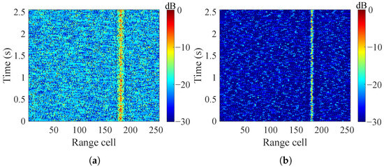 In addition, the traditional moving target detection (MTD) method is taken for comparison. Temporal non-coherent integration (NCI) (as (18)) and OS-CFAR are carried out successively to detect the signals in the range spectrum associated with an SUR target, as illustrated in Figure 8.