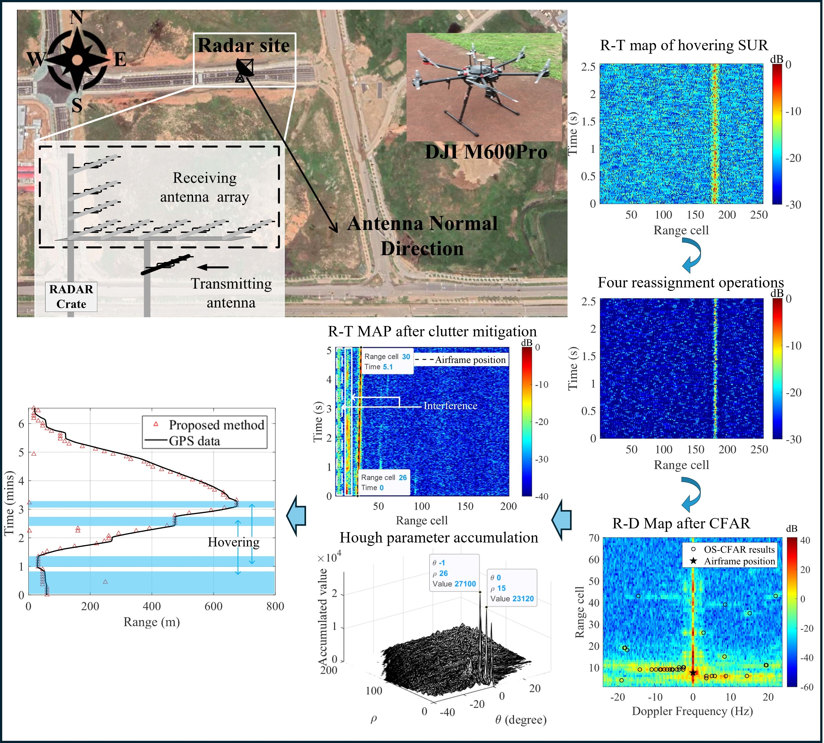 - Multiple reassignment squeezing and Hough-based trajectory detection are combined to distinguish hovering SURs from stationary clutter.